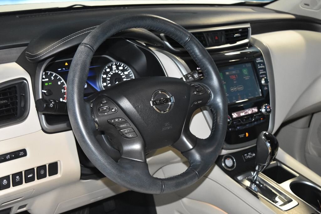 2019 Nissan Murano Platinum Certified. Recent Arrival! *Prices listed do not include a $250 documentation fee, applicable tax, title, tags, license, or $195 service and preparation. All pricing, vehicle information, and features (such as accessories and color) are believed to be accurate, but we do not warrant or guarantee such accuracy. The prices shown above may vary from region to region, and incentives are subject to change. Some offers listed may not be available to all customers. All online sale commitments are subject to confirmation of continued availability of vehicle. Once availability is confirmed, online sale agreement becomes binding upon the parties. If any information found on the website is thought to be erroneous, please verify information with a customer service representative. See dealer for full details. Nissan Certified Certified, CVT with Xtronic, AWD, 11 Speakers, 4-Wheel Disc Brakes, 4.667 Axle Ratio, ABS brakes, Accessory Illuminated Kick Plates, Air Conditioning, Alloy wheels, AM/FM radio: SiriusXM, AM/FM/CD/MP3/WMA Audio System, Auto High-beam Headlights, Auto tilt-away steering wheel, Auto-dimming Rear-View mirror, Automatic temperature control, Blind Spot Warning, Brake assist, Bumpers: body-color, Carpeted Floor Mats & Carpeted Cargo Mat, CD player, Child-Seat-Sensing Airbag, Climate-Controlled Front Bucket Seats, Compass, Delay-off headlights, Driver door bin, Driver vanity mirror, Dual front impact airbags, Dual front side impact airbags, Electronic Stability Control, Emergency communication system: NissanConnect Services, Four wheel independent suspension, Front anti-roll bar, Front Bucket Seats, Front Center Armrest, Front dual zone A/C, Front fog lights, Front reading lights, Fully automatic headlights, Garage door transmitter: HomeLink, Heated door mirrors, Heated front seats, Heated rear seats, Heated steering wheel, Illuminated entry, Illuminated Kick Plate, Knee airbag, Low tire pressure warning, Memory seat, Navigation system: NissanConnect Navigation, NissanConnect featuring Apple CarPlay and Android Auto, NissanConnect Services Powered By SiriusXM, Occupant sensing airbag, Outside temperature display, Overhead airbag, Overhead console, Panic alarm, Passenger door bin, Passenger vanity mirror, Power door mirrors, Power driver seat, Power Liftgate, Power moonroof, Power passenger seat, Power steering, Power windows, Radio data system, Rear anti-roll bar, Rear reading lights, Rear seat center armrest, Rear side impact airbag, Rear window defroster, Rear window wiper, Remote keyless entry, Roof rack: rails only, Security system, Semi-Aniline Leather-Appointed Seat Trim, Speed control, Speed-sensing steering, Speed-Sensitive Wipers, Splash Guards, Split folding rear seat, Spoiler, Steering wheel memory, Steering wheel mounted audio controls, Tachometer, Telescoping steering wheel, Tilt steering wheel, Traction control, Trip computer, Turn signal indicator mirrors, Variably intermittent wipers, Ventilated front seats, Wheels: 20" Dark Hyper Silver, CVT with Xtronic, AWD. CARFAX One-Owner. Clean CARFAX. Nissan Certified Details: