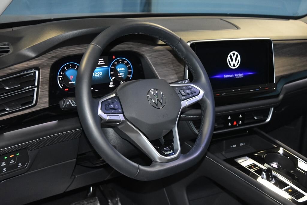 2025 Volkswagen Atlas 2.0T SEL Premium R-Line Certified. Recent Arrival! **Prices listed do not include a $250 documentation fee, applicable tax, title, tags, license, or $195 service and preparation. All pricing, vehicle information, and features (such as accessories and color) are believed to be accurate, but we do not warrant or guarantee such accuracy. The prices shown above may vary from region to region, and incentives are subject to change. Some offers listed may not be available to all customers. All online sale commitments are subject to confirmation of continued availability of vehicle. Once availability is confirmed, online sale agreement becomes binding upon the parties. If any information found on the website is thought to be erroneous, please verify information with a customer service representative. See dealer for full details. Volkswagen Certified Pre-Owned Certified, 10 Speakers, 21" 2-tone machined alloy wheels, 2nd-row dual captain's chairs, 3rd row seats: split-bench, 4-Wheel Disc Brakes, ABS brakes, Air Conditioning, Alloy wheels, AM/FM radio: SiriusXM with 360L, Auto High-beam Headlights, Auto-dimming Rear-View mirror, auto-dimming rearview mirror with HomeLink Connect, Automatic temperature control, black Bumperdillo rear bumper protection plate, Brake assist, Bumpers: body-color, Compass, Delay-off headlights, Driver door bin, Driver vanity mirror, Dual front impact airbags, Dual front side impact airbags, Electronic Stability Control, Emergency communication system: VW Car-Net Safe & Secure 5-year, Exterior Parking Camera Rear, Four wheel independent suspension, four-wheel independent suspension, Front anti-roll bar, Front Bucket Seats, Front Center Armrest, Front dual zone A/C, Front fog lights, Front reading lights, Fully automatic headlights, harman/kardon® Speakers, Heads-Up Display, heated and Actively ventilated front bucket seats, Heated door mirrors, Heated front seats, Heated rear seats, Heated steering wheel, Illuminated entry, Leather steering wheel, Low tire pressure warning, Memory seat, MIB3 discover media with navigation, Navigation System, Occupant sensing airbag, Outside temperature display, Overhead airbag, Overhead console, Panic alarm, Passenger door bin, Passenger vanity mirror, perforated vienna leather seating surfaces, Power door mirrors, Power driver seat, Power Liftgate, Power moonroof: Panoramic, Power passenger seat, Power steering, Power windows, Radio data system, Rain sensing wipers, Rear air conditioning, Rear anti-roll bar, Rear audio controls, Rear reading lights, Rear seat center armrest, Rear window defroster, Rear window wiper, Remote keyless entry, retractable privacy cover for cargo area, Security system, Speed control, Speed-sensing steering, Split folding rear seat, Spoiler, Sport steering wheel, Steering wheel mounted audio controls, Tachometer, Telescoping steering wheel, Tilt steering wheel, Traction control, Trip computer, Turn signal indicator mirrors, Variably intermittent wipers, Ventilated front seats, Volkswagen logo puddle lights, VW care. CARFAX One-Owner. Clean CARFAX. Volkswagen Certified Pre-Owned Details: