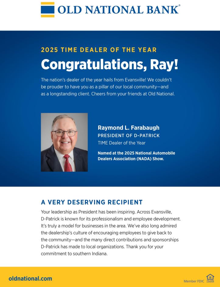 - 44 News: https://www.wevv.com/news/raymond-farabaugh-wins-time-2025-dealer-of-the-year/article_a787abac-df52-11ef-9a8f-e3ada3dedfdc.html