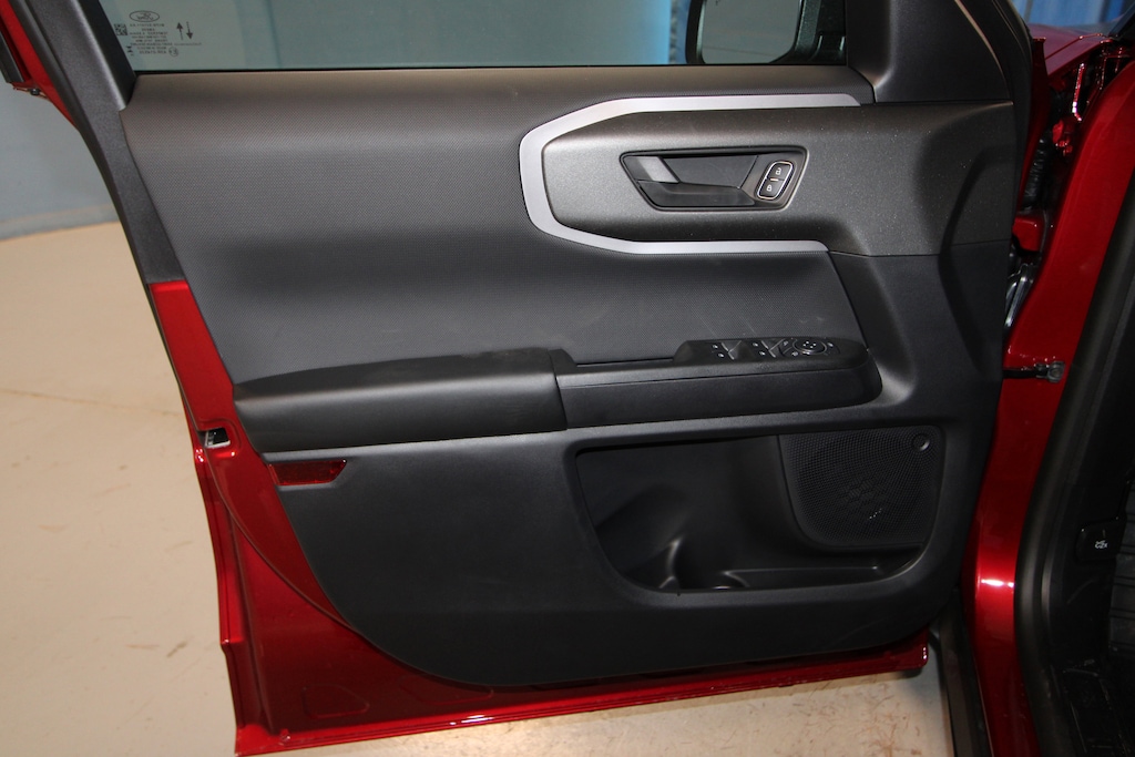 4-Wheel Disc Brakes, 6 Speakers, ABS brakes, Air Conditioning, Alloy wheels, AM/FM radio: SiriusXM, AM/FM Stereo, Auto High-beam Headlights, Automatic temperature control, Black Appearance Package, Brake assist, Carbon Black Grille w/Black BRONCO Lettering, Cargo Mat, Cloth w/Easy-to-Clean Front Bucket Seats, Compass, Convenience Package, Delay-off headlights, Driver door bin, Driver vanity mirror, Dual front impact airbags, Dual front side impact airbags, Electronic Stability Control, Emergency communication system: SYNC 4 911 Assist, Equipment Group 200A, Four wheel independent suspension, Front & Rear Floor Liners w/o Carpet Mats, Front anti-roll bar, Front Bucket Seats, Front Center Armrest, Front Driver/Passenger Seat Back Map Pockets, Front reading lights, Fully automatic headlights, Heated 8-Way Power Driver's Seat, Heated door mirrors, Illuminated entry, Knee airbag, LED Fog Lamps, Liftgate w/Black BRONCO SPORT Lettering, Low tire pressure warning, Occupant sensing airbag, Outside temperature display, Overhead airbag, Overhead console, Painted Shadow Black Roof, Panic alarm, Passenger door bin, Passenger vanity mirror, Power door mirrors, Power steering, Power windows, Premium Trimmed Htd Fr Sport Contour Bucket Seats, Premium Wrapped Steering Wheel, Radio data system, Rear anti-roll bar, Rear Parking Sensors, Rear reading lights, Rear seat center armrest, Rear window defroster, Rear window wiper, Remote keyless entry, Security system, SiriusXM, Speed control, Speed-sensing steering, Speed-Sensitive Wipers, Split folding rear seat, Steering wheel mounted audio controls, SYNC 4 w/Enhanced Voice Recognition, Tachometer, Telescoping steering wheel, Tilt steering wheel, Traction control, Trip computer, Universal Garage Door Opener (UGDO), Variably intermittent wipers, Wheels: 17" Carbonized Gray-Painted Aluminum, Wheels: 17" Matte Black-Painted Aluminum.