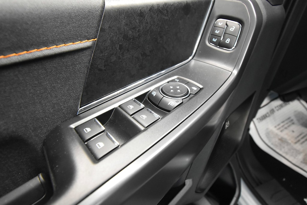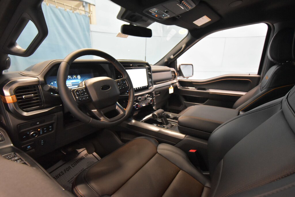 4WD, 2nd Row Heated Seats, 4 Pickup Box Tie-Down Plates, 4-Wheel Disc Brakes, 8 Speakers, ABS brakes, Adjustable pedals, Air Conditioning, Alloy wheels, AM/FM radio: SiriusXM with 360L, Ambient Lighting, Auto High-beam Headlights, Auto-dimming door mirrors, Auto-Dimming Rear-View Mirror, Auto-dimming Rear-View mirror, Automatic temperature control, Bed Utility Package, Brake assist, Bumpers: body-color, Compass, Console Worksurface, Delay-off headlights, Driver door bin, Driver vanity mirror, Dual front impact airbags, Dual front side impact airbags, Electronic Locking w/3.73 Axle Ratio, Electronic Stability Control, Emergency communication system: SYNC 4 911 Assist, Equipment Group 402A High, Front anti-roll bar, Front Axle w/Torsen Differential, Front Bucket Seats, Front Center Armrest, Front dual zone A/C, Front fog lights, Front reading lights, Front wheel independent suspension, Fully automatic headlights, GVWR: 7,100 lbs Payload Package, Heads-Up Display, Heated door mirrors, Heated front seats, Heated Steering Wheel, Illuminated entry, Integrated Trailer Brake Controller, Internet access capable: FordPass Connect 5G, LED Box Lighting, LED Taillamps, Low tire pressure warning, Media Bin Door, Mobile Office Package, Modular Front Bumper & Carbon Black Rear Bumper, Navigation system: Connected Navigation, Occupant sensing airbag, Outside temperature display, Overhead airbag, Overhead console, Panic alarm, Partitioned Lockable Rear Storage, Passenger door bin, Passenger vanity mirror, Power door mirrors, Power driver seat, Power Glass Heated Sideview Mirrors, Power passenger seat, Power steering, Power Tailgate, Power windows, Power-Adjustable Pedals w/Memory, Premium Wrapped Steering Wheel, Radio data system, Radio: B&O Sound System by Bang & Olufsen, Radio: B&O Unleashed Sound System by Bang & Olufsen, Rain-Sensing Wipers, Rear reading lights, Rear step bumper, Rear window defroster, Remote keyless entry, Security system, Speed control, Split folding rear seat, Steering wheel mounted audio controls, SYNC 4 w/Enhanced Voice Recognition, Tachometer, Tailgate Step w/Tailgate Work Surface, Telescoping steering wheel, Tilt steering wheel, Tow/Haul Package, Traction control, Tray Style Floor Liner w/Carpet Mats, Trip computer, Turn signal indicator mirrors, Two-Speed Automatic AWD w/Mechanical Locking 4WD, Unique Sport Cloth 40/Console/40 Power Front Seat, Unique Tremor Leather-Trimmed Bucket Seats, Universal Garage Door Opener, Variably intermittent wipers, Voltmeter, Wheels: 18 Alloy w/Dark Matte Finish, Wireless Charging, 4WD.