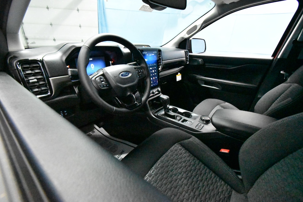 4WD, 12 Display in Center Stack, 4-Wheel Disc Brakes, 6 Speakers, ABS brakes, Air Conditioning, Alloy wheels, AM/FM radio: SiriusXM, AM/FM Stereo, Auto High-beam Headlights, Auto-dimming Rear-View mirror, Brake assist, Class IV Trailer Hitch Receiver, Cloth Front Bucket Seats, Compass, Delay-off headlights, Driver door bin, Driver vanity mirror, Dual front impact airbags, Dual front side impact airbags, Dual-Zone Electronic Climate Control (DEATC), Electronic Stability Control, Emergency communication system: SYNC 4 911 Assist, Equipment Group 301A High, Front anti-roll bar, Front Bucket Seats, Front Center Armrest, Front fog lights, Front reading lights, Front wheel independent suspension, Fully automatic headlights, Gray Painted Center Bar & Grille Surround, Gray Painted Front Fascia & Rear Bumper, Illuminated entry, Leather Shift Knob, Low tire pressure warning, Navigation system: Connected Navigation, Occupant sensing airbag, Outside temperature display, Overhead airbag, Overhead console, Panic alarm, Passenger door bin, Passenger vanity mirror, Power door mirrors, Power steering, Power windows, Power-Sliding Rear Window, Rear reading lights, Rear seat center armrest, Rear step bumper, Rear window defroster, Remote keyless entry, Security system, SiriusXM Satellite Radio, Speed control, Speed-sensing steering, Sport Appearance Package, Sport Box Decal, Steering wheel mounted audio controls, SYNC 4A w/Connected Navigation, Telescoping steering wheel, Tilt steering wheel, Traction control, Trailer Tow Package, Tray Style Floor Liner, Trip computer, Variably intermittent wipers, Voltmeter, Wheels: 17 Gray-Painted Aluminum, 4WD.