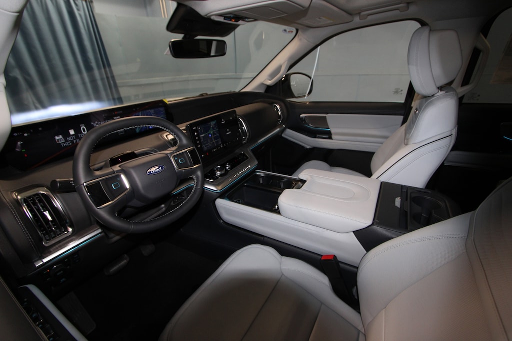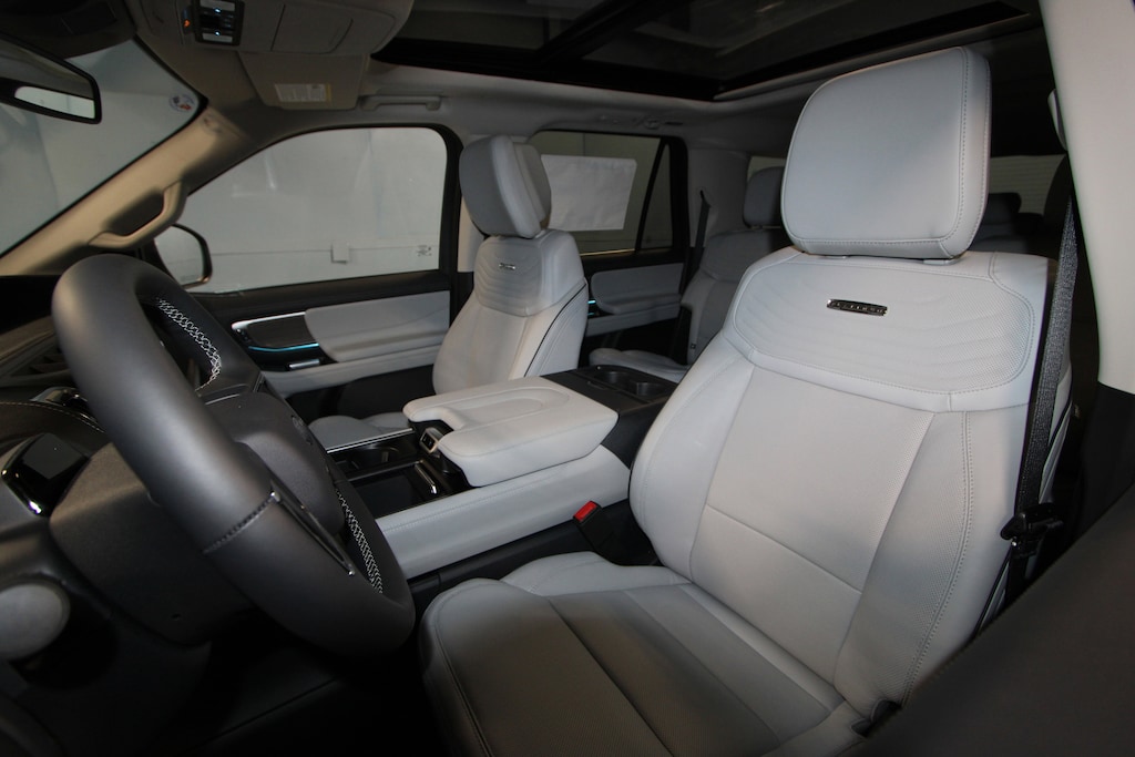 10 Speakers, 2nd Row Power-Folding Captain's Chairs, 3.73 Axle Ratio, 3rd row seats: split-bench, 4-Wheel Disc Brakes, ABS brakes, Air Conditioning, Alloy wheels, AM/FM radio: SiriusXM with 360L, Apple CarPlay/Android Auto, Auto High-beam Headlights, Auto-dimming door mirrors, Auto-dimming Rear-View mirror, Automatic temperature control, Black Headlamp Bezel w/Satin Trim Applique, BlueCruise (Equipment + 1-Year + 90-Day Plan), Brake assist, Bumpers: body-color, Carbon Black Front Bumper w/Lit Grille Bar, Chrome Roof Rails w/Black End Caps, Compass, Delay-off headlights, Driver door bin, Driver vanity mirror, Driver's Package, Dual front impact airbags, Dual front side impact airbags, Electronic Stability Control, Emergency communication system: 911 Assist, Engine Sound Enhancer, Exterior Parking Camera Rear, Ford Connectivity Package (1-Year Included), Ford Digital Experience, Four wheel independent suspension, Front & 2nd Rows Floor Liners w/o Carpet Mats, Front anti-roll bar, Front Bucket Seats, Front Center Armrest, Front Door Scuff Plates w/Met Insert & Bright Rear, Front dual zone A/C, Front reading lights, Fully automatic headlights, Garage door transmitter, Genuine wood dashboard insert, Genuine wood door panel insert, Heated & Ventilated Leather Front Captain's Chairs, Heated door mirrors, Heated front seats, Heated rear seats, Heated steering wheel, High Flow Exhaust System, Illuminated entry, Intersection Assist, Leather steering wheel, Low tire pressure warning, Memory seat, Multicontour Active Motion Lthr Frnt Captains Chairs, Navigation System, Occupant sensing airbag, Outside temperature display, Overhead airbag, Overhead console, Panic alarm, Passenger door bin, Passenger vanity mirror, Platinum Ultimate Interior Package, Platinum Ultimate Package, Polished Stainless Steel Beltline Molding, Power door mirrors, Power driver seat, Power moonroof: Vista Roof, Power passenger seat, Power steering, Power windows, Radio data system, Radio: B&O Play Unleashed, Radio: B&O Sound System by Bang & Olufsen, Rain sensing wipers, Rear air conditioning, Rear anti-roll bar, Rear reading lights, Rear Seat Radio Controls, Rear Side Windows Laminated Glass, Rear window defroster, Rear window wiper, Reclining 3rd row seat, Remote keyless entry, Satin Aluminum Expedition Lettering On Side & Hood, Satin Aluminum Platinum Badge On Tailgate, Security system, Signature Grille Lighting, SiriusXM w/360L, Speed control, Speed-sensing steering, Speed-Sensitive Wipers, Split folding rear seat, Spoiler, Steering wheel memory, Steering wheel mounted audio controls, Tachometer, Telescoping steering wheel, Tilt steering wheel, Traction control, Trip computer, Turn signal indicator mirrors, Variably intermittent wipers, Ventilated front seats, Voltmeter, Wheels: 20" x 8.5" Ebony Bright Machined Aluminum, Wheels: 22" x 9.0" Ebony Bright Machined Face Alum, Wheels: 24" x 9.5" Tarnished Dark Metallic.