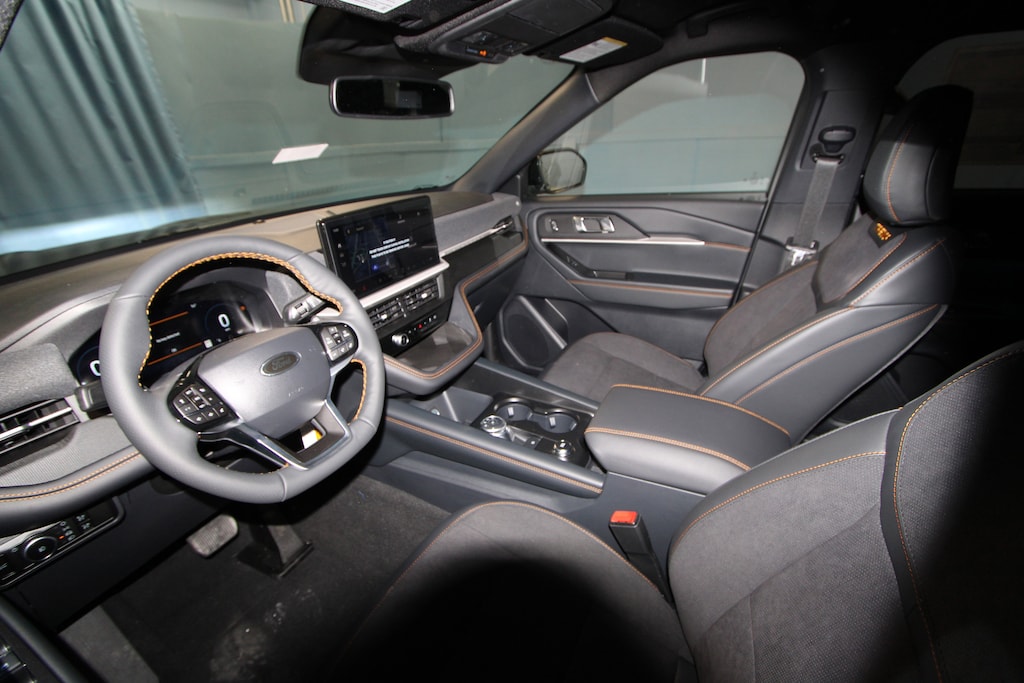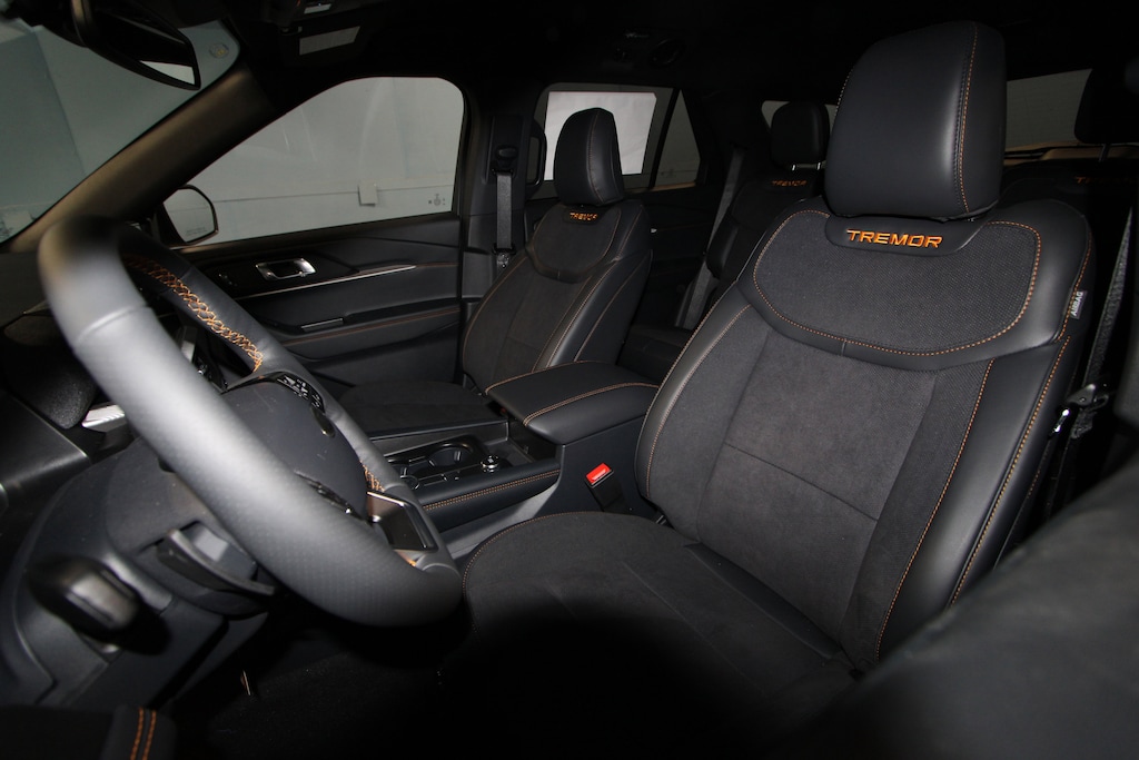 4WD, 10 Speakers, 3rd Row PowerFold Seats, 3rd row seats: bench, 4-Wheel Disc Brakes, ABS brakes, Air Conditioning, Alloy wheels, AM/FM radio: SiriusXM with 360L, Ambient Lighting, Apple CarPlay/Android Auto, Auto High-beam Headlights, Auto-Dimming Interior Rear-View Mirror, Automatic temperature control, Brake assist, Bumpers: body-color, Compass, Delay-off headlights, Driver door bin, Driver vanity mirror, Dual front impact airbags, Dual front side impact airbags, Electronic Stability Control, Emergency communication system: 911 Assist, Exterior Parking Camera Rear, Four wheel independent suspension, Front anti-roll bar, Front Bucket Seats, Front Center Armrest, Front dual zone A/C, Front fog lights, Front reading lights, Fully automatic headlights, Heated door mirrors, Heated front seats, Heated rear seats, Heated steering wheel, Heated/Ventilated Miko Captain's Chairs, Illuminated entry, Internet access capable: FordPass Connect 5G, Knee airbag, Leather steering wheel, Low tire pressure warning, Manual-Folding Sideview Mirrors, Memory Driver's Seat, Navigation System, Occupant sensing airbag, Outside temperature display, Overhead airbag, Overhead console, Panic alarm, Passenger door bin, Passenger vanity mirror, Power door mirrors, Power driver seat, Power Liftgate, Power passenger seat, Power steering, Power windows, Radio: B&O Sound System by Bang and Olufsen, Rain-Sensing Wipers (front Only), Rear air conditioning, Rear anti-roll bar, Rear reading lights, Rear window defroster, Rear window wiper, Remote keyless entry, SecuriCode Keyless Entry Keypad, Security system, Speed control, Speed-sensing steering, Speed-Sensitive Wipers, Split folding rear seat, Spoiler, Sport steering wheel, Steering wheel mounted audio controls, Tachometer, Telescoping steering wheel, Tilt steering wheel, Traction control, Tremor Convenience Package, Trip computer, Variably intermittent wipers, Ventilated front seats, Wheels: 18" High Gloss Black-Painted Aluminum, 4WD.