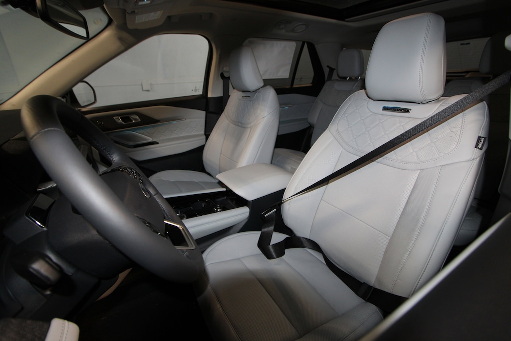 4WD, 14 Speakers, 3rd row seats: bench, 4-Wheel Disc Brakes, ABS brakes, ActiveX Trimmed Captain's Chairs, Air Conditioning, Alloy wheels, AM/FM radio: SiriusXM with 360L, Apple CarPlay/Android Auto, Auto High-beam Headlights, Auto-dimming door mirrors, Auto-dimming Rear-View mirror, Automatic temperature control, Brake assist, Bumpers: body-color, Compass, Delay-off headlights, Driver door bin, Driver vanity mirror, Dual front impact airbags, Dual front side impact airbags, Electronic Stability Control, Emergency communication system: 911 Assist, Equipment Group 600A Standard Package, Exterior Parking Camera Rear, Four wheel independent suspension, Front and 2nd Rows Floor Liners with Carper Floor Mats, Front anti-roll bar, Front Bucket Seats, Front Center Armrest, Front dual zone A/C, Front fog lights, Front License Plate Bracket, Front reading lights, Fully automatic headlights, Garage door transmitter, Heated door mirrors, Heated front seats, Heated rear seats, Heated steering wheel, Illuminated entry, Internet access capable: FordPass Connect 5G, Knee airbag, Leather steering wheel, Low tire pressure warning, Lux Leather Package, Memory seat, Navigation System, Occupant sensing airbag, Outside temperature display, Overhead airbag, Overhead console, Panic alarm, Panoramic Fixed Glass Roof with Power Shade, Passenger door bin, Passenger vanity mirror, Platinum Badges on Front Row Seats, Power door mirrors, Power driver seat, Power Liftgate, Power passenger seat, Power steering, Power windows, Premium Leather Seating Surfaces Captain's Chairs, Quilting and Stitching on Door Panels, Quilting and Stitching on Seats, Radio data system, Radio: B&O Sound System by Bang & Olufsen with HD, Rain sensing wipers, Rear air conditioning, Rear anti-roll bar, Rear reading lights, Rear window defroster, Rear window wiper, Remote keyless entry, SecuriCode Keyless Entry Keypad, Security system, Speed control, Speed-sensing steering, Speed-Sensitive Wipers, Split folding rear seat, Spoiler, Steering wheel mounted audio controls, Tachometer, Telescoping steering wheel, Tilt steering wheel, Traction control, Trip computer, Turn signal indicator mirrors, Variably intermittent wipers, Ventilated front seats, Wheels: : 21" Bright Machined Aluminum w/Tarnish Dark Pockets, Wheels: 20" Luster Nickel-Painted Aluminum, 4WD.