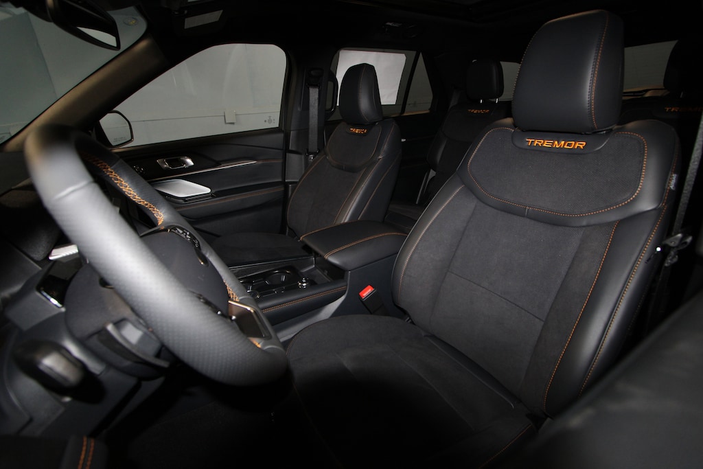4WD, 10 Speakers, 3rd Row PowerFold Seats, 3rd row seats: bench, 4-Wheel Disc Brakes, ABS brakes, Air Conditioning, Alloy wheels, AM/FM radio: SiriusXM with 360L, Ambient Lighting, Apple CarPlay/Android Auto, Auto High-beam Headlights, Automatic temperature control, BlueCruise Hardware, Brake assist, Bumpers: body-color, Compass, Delay-off headlights, Driver door bin, Driver vanity mirror, Dual front impact airbags, Dual front side impact airbags, Electronic Stability Control, Emergency communication system: 911 Assist, Equipment Group 800A Standard Package, Exterior Parking Camera Rear, Four wheel independent suspension, Front anti-roll bar, Front Bucket Seats, Front Center Armrest, Front dual zone A/C, Front fog lights, Front License Plate Bracket, Front reading lights, Fully automatic headlights, Garage door transmitter, Heated door mirrors, Heated front seats, Heated rear seats, Heated steering wheel, Heated/Ventilated Miko Suede Captain's Chairs, Illuminated entry, Knee airbag, Leather steering wheel, Low tire pressure warning, Memory Driver's Seat, Multicontour Seats with Front Active Motion, Navigation System, Occupant sensing airbag, Outside temperature display, Overhead airbag, Overhead console, Panic alarm, Panoramic Fixed Glass Roof with Power Shade, Passenger door bin, Passenger vanity mirror, Power door mirrors, Power driver seat, Power Liftgate, Power passenger seat, Power steering, Power windows, Power-Folding with Autofold Side Mirrors, Radio: B&O Sound System by Bang & Olufsen, Radio: B&O Sound System by Bang and Olufsen, Rain-Sensing Wipers (front Only), Rear air conditioning, Rear anti-roll bar, Rear reading lights, Rear window defroster, Rear window wiper, Remote keyless entry, SecuriCode Keyless Entry Keypad, Security system, Speed control, Speed-sensing steering, Speed-Sensitive Wipers, Split folding rear seat, Spoiler, Sport steering wheel, Steering wheel mounted audio controls, Tachometer, Telescoping steering wheel, Tilt steering wheel, Traction control, Tremor Ultimate Package, Trip computer, Variably intermittent wipers, Ventilated front seats, Wheels: 18" High Gloss Black-Painted Aluminum, 4WD.