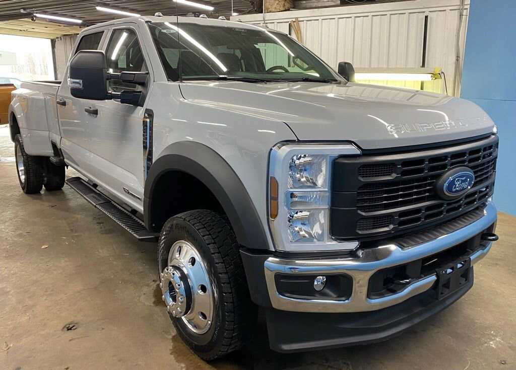 4WD, 19.5 Forged Polished Aluminum Wheels, 4-Wheel Disc Brakes, 410 Amp Dual Alternators, ABS brakes, Air Conditioning, Alloy wheels, Brake assist, Compass, Delay-off headlights, Dual front impact airbags, Dual front side impact airbags, Dual rear wheels, Electronic Stability Control, Emergency communication system: SYNC 4 911 Assist, Engine Block Heater, Ford Connectivity Package (1-Year Included), Front anti-roll bar, Front reading lights, Fully automatic headlights, FX4 Off-Road Package, GVWR: 14,000 Lb Payload Package, Heated door mirrors, Hill Descent Control, Illuminated entry, Internet access capable: 5G Modem - Ford Connectivity Package, Limited Slip with 4.30 Axle Ratio, Low tire pressure warning, Off-Road Specifically Tuned Shock Absorbers, Outside temperature display, Overhead airbag, Overhead console, Panic alarm, Passenger vanity mirror, Power door mirrors, Power steering, Power windows, Rapid-Heat Supplemental Cab Heater, Rear anti-roll bar, Rear reading lights, Rear step bumper, Remote keyless entry, Security system, Snow Plow Prep Package, Speed control, Split folding rear seat, Steering wheel mounted audio controls, Tachometer, Telescoping steering wheel, Tilt steering wheel, Tough Bed Spray-in Bedliner, Traction control, Trip computer, Turn signal indicator mirrors, Unique FX4 Off-Road Box Decal, Upfitter Switches (6), Variably intermittent wipers, 4WD.
