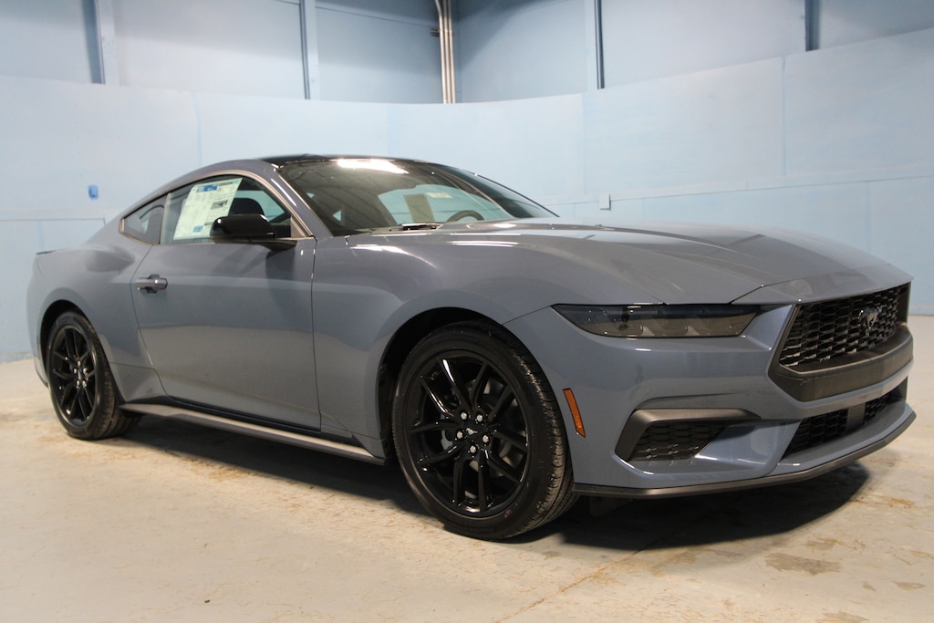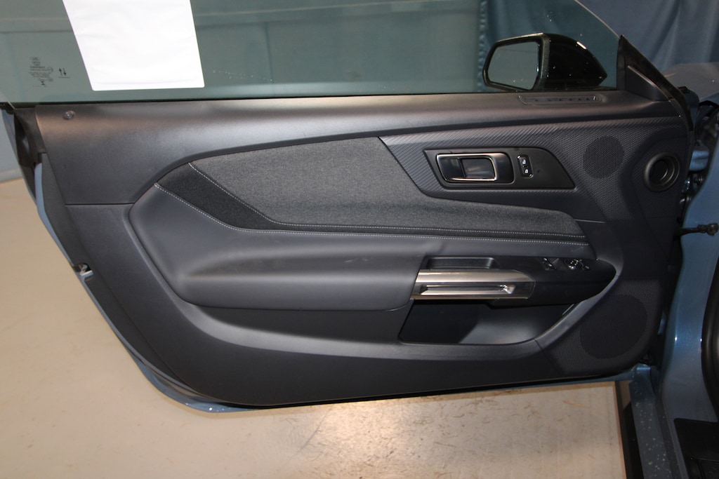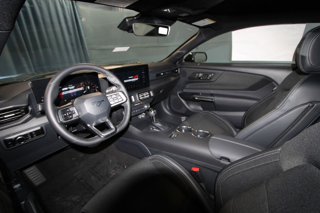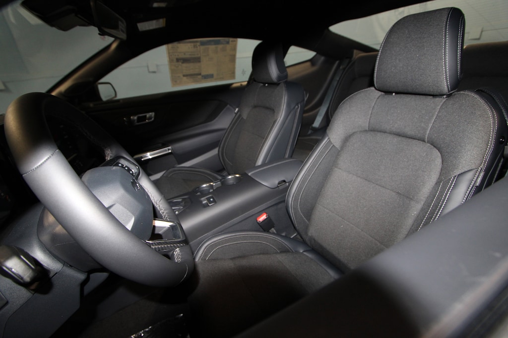 1st Row Carpeted Black Floor Mats, 4-Wheel Disc Brakes, ABS brakes, Air Conditioning, Alloy wheels, AM/FM Stereo, Auto High-beam Headlights, Automatic temperature control, Black Front & Rear Pony Badges, Black Mirror Caps, Brake assist, Bumpers: body-color, Compass, Delay-off headlights, Driver door bin, Driver vanity mirror, Dual front impact airbags, Dual front side impact airbags, Electronic Stability Control, Emergency communication system: 911 Assist, Exterior Parking Camera Rear, Four wheel independent suspension, Front anti-roll bar, Front Bucket Seats, Front Center Armrest, Front dual zone A/C, Front reading lights, Fully automatic headlights, Illuminated entry, Knee airbag, Leather Shift Knob, Low tire pressure warning, Mustang Nite Pony Package, Occupant sensing airbag, Outside temperature display, Overhead airbag, Overhead console, Painted Black Roof, Panic alarm, Passenger door bin, Passenger vanity mirror, Power door mirrors, Power steering, Power windows, Radio data system, Rain sensing wipers, Rear anti-roll bar, Rear Parking Sensors, Rear window defroster, Remote keyless entry, Speed control, Speed-sensing steering, Speed-Sensitive Wipers, Split folding rear seat, Sport steering wheel, Steering wheel mounted audio controls, SYNC 4, Tachometer, Telescoping steering wheel, Tilt steering wheel, Traction control, Trip computer, Variably intermittent wipers, Voltmeter, Wedge Decklid Spoiler, Wheels: 18" x 8" Painted Shadow Silver Cast Alum, Wheels: 19" x 8.5" Ebony Black-Painted Aluminum.