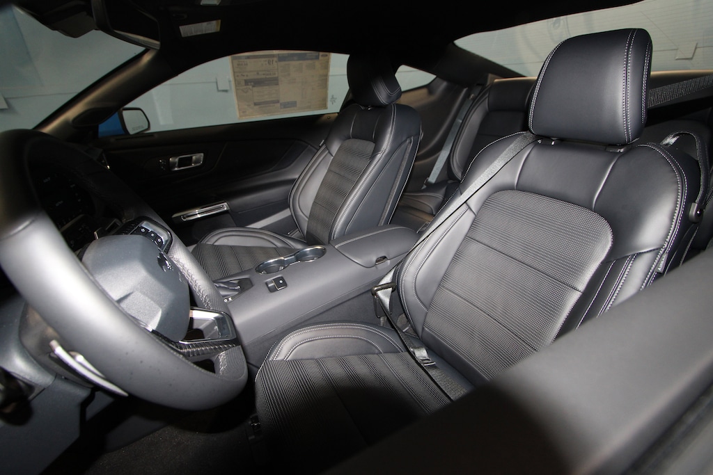 4-Wheel Disc Brakes, ABS brakes, Active Valve Performance Exhaust, Air Conditioning, Alloy wheels, Aluminum Foot Pedals, AM/FM Stereo, Auto High-beam Headlights, Automatic temperature control, Brake assist, Bumpers: body-color, Compass, Delay-off headlights, Driver door bin, Driver Seat Memory with 3 Settings, Driver vanity mirror, Dual front impact airbags, Dual front side impact airbags, Electronic Stability Control, Emergency communication system: 911 Assist, Equipment Group 401A High Package, Exterior Parking Camera Rear, Four wheel independent suspension, Front anti-roll bar, Front Bucket Seats, Front Center Armrest, Front dual zone A/C, Front reading lights, Fully automatic headlights, Illuminated entry, Knee airbag, Leather Shift Knob, Leather steering wheel, Leather-Trimmed Bucket Seats with Color Accents, Low tire pressure warning, Occupant sensing airbag, Outside temperature display, Overhead airbag, Overhead console, Panic alarm, Passenger door bin, Passenger vanity mirror, Power door mirrors, Power steering, Power windows, Premium Floor Liners Front and Rear (with Carpet Mats), Radio data system, Rain sensing wipers, Rear anti-roll bar, Rear Parking Sensors, Rear window defroster, Remote keyless entry, Speed control, Speed-sensing steering, Speed-Sensitive Wipers, Split folding rear seat, Sport steering wheel, Steering wheel mounted audio controls, SYNC 4, Tachometer, Telescoping steering wheel, Tilt steering wheel, Traction control, Trip computer, Variably intermittent wipers, Voltmeter, Wheels: 19" x 8.5" Shadow Silver-Painted Aluminum.