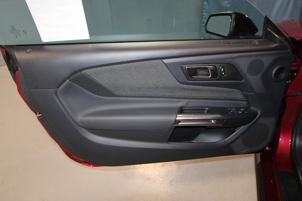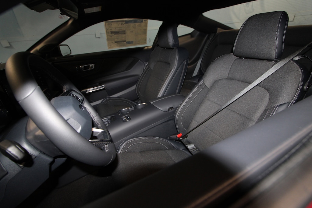 4-Wheel Disc Brakes, ABS brakes, Air Conditioning, Alloy wheels, AM/FM Stereo, Auto High-beam Headlights, Automatic temperature control, Black Front and Rear Pony Badges, Black Mirror Caps, Brake assist, Bumpers: body-color, Compass, Delay-off headlights, Driver door bin, Driver vanity mirror, Dual front impact airbags, Dual front side impact airbags, Electronic Stability Control, Emergency communication system: 911 Assist, Exterior Parking Camera Rear, Four wheel independent suspension, Front anti-roll bar, Front Bucket Seats, Front Center Armrest, Front dual zone A/C, Front reading lights, Fully automatic headlights, Illuminated entry, Knee airbag, Leather Shift Knob, Low tire pressure warning, Mustang Nite Pony Package, Occupant sensing airbag, Outside temperature display, Overhead airbag, Overhead console, Painted Black Roof, Panic alarm, Passenger door bin, Passenger vanity mirror, Power door mirrors, Power steering, Power windows, Premium Floor Liners Front and Rear (with Carpet Mats), Radio data system, Rain sensing wipers, Rear anti-roll bar, Rear Parking Sensors, Rear window defroster, Remote keyless entry, Speed control, Speed-sensing steering, Speed-Sensitive Wipers, Split folding rear seat, Sport steering wheel, Steering wheel mounted audio controls, SYNC 4, Tachometer, Telescoping steering wheel, Tilt steering wheel, Traction control, Trip computer, Variably intermittent wipers, Voltmeter, Wheels: 18" x 8" Painted Shadow Silver Cast Aluminum, Wheels: 19" x 8.5" Ebony Black-Painted Aluminum.