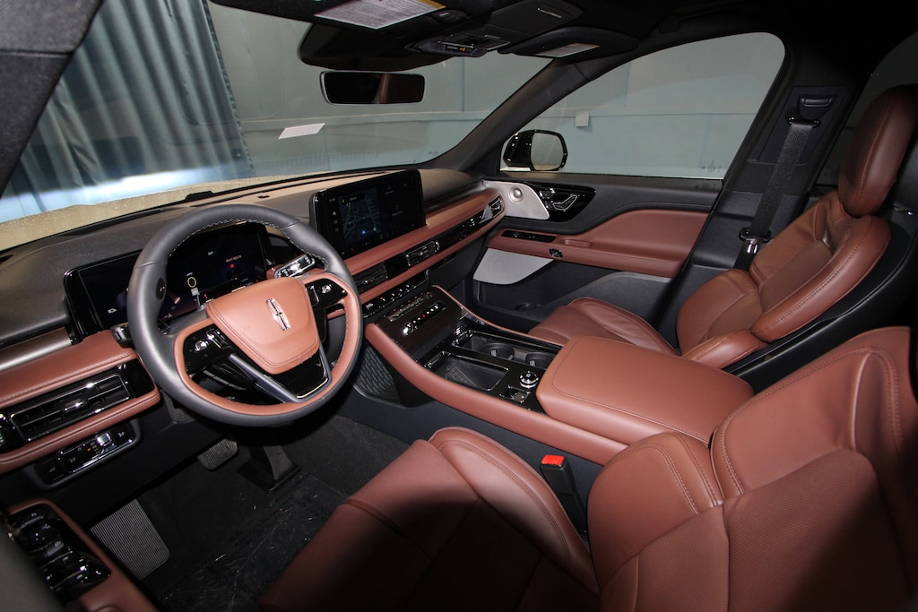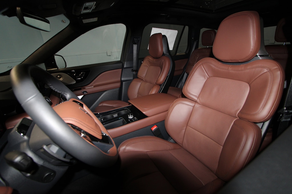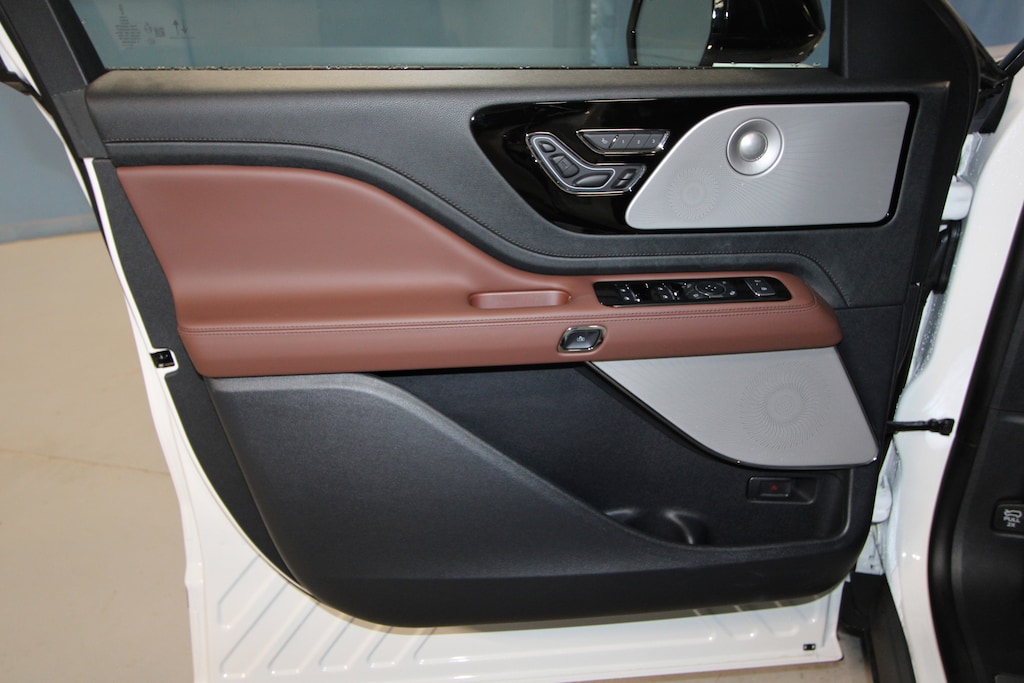 14 Speakers, 30-Way Perfect Position Seats w/Active Motion, 3rd row seats: split-bench, 4-Wheel Disc Brakes, 40/Mini Console/40 Dual Captain's Chairs, ABS brakes, Adaptive Dynamic Bending Lighting, Adaptive Pixel LED Headlamps, Adaptive suspension, Advanced Heads-Up Display, Air Conditioning, Air Glide Suspension w/Dynamic Lower Entry, Alloy wheels, AM/FM radio: SiriusXM, Apple CarPlay/Android Auto, Audio memory, Auto Air Refresh, Auto High-beam Headlights, Auto-dimming door mirrors, Auto-dimming Rear-View mirror, Automatic temperature control, Brake assist, Bumpers: body-color, Compass, Delay-off headlights, Driver door bin, Driver vanity mirror, Dual front impact airbags, Dual front side impact airbags, Dynamic Handling Package, Electronic Stability Control, Emergency communication system: 911 Assist, Equipment Group 201A, Exterior Parking Camera Rear, Four wheel independent suspension, Front anti-roll bar, Front Bucket Seats, Front Center Armrest, Front dual zone A/C, Front reading lights, Fully automatic headlights, Garage door transmitter, Genuine wood console insert, Genuine wood dashboard insert, Heads-Up Display, Heated & Ventilated Rear Seats, Heated door mirrors, Heated front seats, Heated steering wheel, HVAC memory, Illuminated entry, Illuminated Lincoln Star in Grille, Illumination Package, Knee airbag, Leather steering wheel, Lincoln BlueCruise Equipped (4-Years Included), Lincoln Connectivity Package (4-years included), Lincoln Digital Experience, Lincoln Dynamic Signature Lighting, Low tire pressure warning, Luxury Package, Memory seat, Navigation System, Occupant sensing airbag, Outside temperature display, Overhead airbag, Overhead console, Panic alarm, Passenger door bin, Passenger vanity mirror, Power door mirrors, Power driver seat, Power Liftgate, Power moonroof: Panoramic Vista Roof, Power passenger seat, Power steering, Power windows, Premium Lthr Heated/Ventilated Fnt Captain's Chairs, Radio data system, Radio: Revel Audio System w/14 Speakers, Radio: Revel Ultima 3D Audio System w/28 Speakers, Rain sensing wipers, Rear air conditioning, Rear anti-roll bar, Rear audio controls, Rear dual zone A/C, Rear reading lights, Rear window defroster, Rear window wiper, Remote keyless entry, Security system, SiriusXM, Speed control, Speed Dependent Lighting, Speed-Sensitive Wipers, Split folding rear seat, Spoiler, Steering wheel memory, Steering wheel mounted A/C controls, Steering wheel mounted audio controls, Tachometer, Telescoping steering wheel, Tilt steering wheel, Traction control, Trip computer, Turn signal indicator mirrors, Variably intermittent wipers, Ventilated front seats, Wheels: 21 Bright-Machined Aluminum, Wheels: 22 Bright-Machined Aluminum, Wireless Charging Pad.