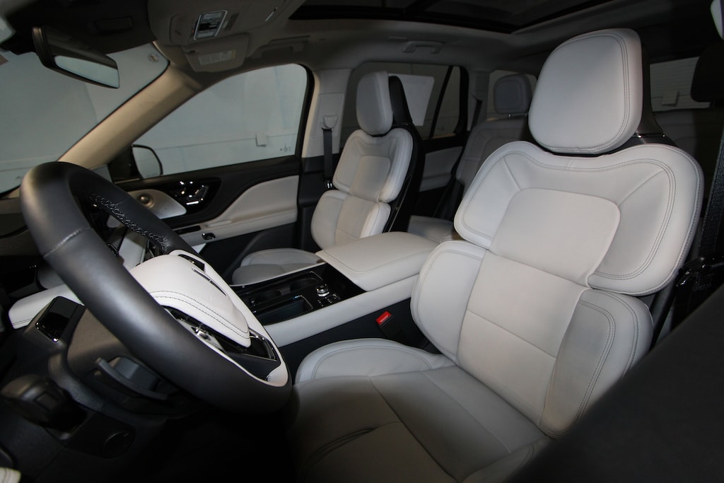 14 Speakers, 30-Way Perfect Position Seats w/Active Motion, 3rd row seats: split-bench, 4-Wheel Disc Brakes, 40/Mini Console/40 Dual Captain's Chairs, ABS brakes, Adaptive Dynamic Bending Lighting, Adaptive Pixel LED Headlamps, Adaptive suspension, Advanced Heads-Up Display, Air Conditioning, Air Glide Suspension w/Dynamic Lower Entry, Alloy wheels, AM/FM radio: SiriusXM, Apple CarPlay/Android Auto, Audio memory, Auto Air Refresh, Auto High-beam Headlights, Auto-dimming door mirrors, Auto-dimming Rear-View mirror, Automatic temperature control, Black Exterior Elements, Body-Color Exterior Elements, Brake assist, Bumpers: body-color, Compass, Delay-off headlights, Driver door bin, Driver vanity mirror, Dual front impact airbags, Dual front side impact airbags, Dynamic Handling Package, Electronic Stability Control, Emergency communication system: 911 Assist, Equipment Group 201A, Exterior Parking Camera Rear, Four wheel independent suspension, Front anti-roll bar, Front Bucket Seats, Front Center Armrest, Front dual zone A/C, Front reading lights, Fully automatic headlights, Garage door transmitter, Genuine wood console insert, Genuine wood dashboard insert, Heads-Up Display, Heated & Ventilated Rear Seats, Heated door mirrors, Heated front seats, Heated steering wheel, HVAC memory, Illuminated entry, Illuminated Lincoln Star in Grille, Illumination Package, Jet Appearance Package, Knee airbag, Leather steering wheel, Lincoln BlueCruise Equipped (4-Years Included), Lincoln Connectivity Package (4-years included), Lincoln Digital Experience, Lincoln Dynamic Signature Lighting, Low tire pressure warning, Luxury Package, Memory seat, Navigation System, Occupant sensing airbag, Outside temperature display, Overhead airbag, Overhead console, Panic alarm, Passenger door bin, Passenger vanity mirror, Power door mirrors, Power driver seat, Power Liftgate, Power moonroof: Panoramic Vista Roof, Power passenger seat, Power steering, Power windows, Premium Lthr Heated/Ventilated Fnt Captain's Chairs, Radio data system, Radio: Revel Audio System w/14 Speakers, Radio: Revel Ultima 3D Audio System w/28 Speakers, Rain sensing wipers, Rear air conditioning, Rear anti-roll bar, Rear audio controls, Rear dual zone A/C, Rear reading lights, Rear window defroster, Rear window wiper, Remote keyless entry, Security system, SiriusXM, Speed control, Speed Dependent Lighting, Speed-Sensitive Wipers, Split folding rear seat, Spoiler, Steering wheel memory, Steering wheel mounted A/C controls, Steering wheel mounted audio controls, Tachometer, Telescoping steering wheel, Tilt steering wheel, Traction control, Trip computer, Turn signal indicator mirrors, Variably intermittent wipers, Ventilated front seats, Wheels: 21 Bright-Machined Aluminum, Wheels: 22 Black Aluminum w/Adaptive Suspension, Wheels: 22 Bright-Machined Aluminum, Wireless Charging Pad.