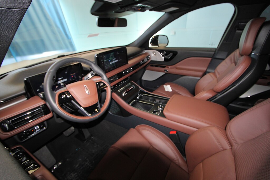14 Speakers, 30-Way Perfect Position Seats w/Active Motion, 3rd row seats: split-bench, 4-Wheel Disc Brakes, 40/Mini Console/40 Dual Captain's Chairs, ABS brakes, Adaptive Dynamic Bending Lighting, Adaptive Pixel LED Headlamps, Adaptive suspension, Advanced Heads-Up Display, Air Conditioning, Air Glide Suspension w/Dynamic Lower Entry, All-Weather 1st & 2nd Row Floor Liners (16A), Alloy wheels, AM/FM radio: SiriusXM, Apple CarPlay/Android Auto, Audio memory, Auto Air Refresh, Auto High-beam Headlights, Auto-dimming door mirrors, Auto-dimming Rear-View mirror, Automatic temperature control, Brake assist, Bumpers: body-color, Compass, Delay-off headlights, Driver door bin, Driver vanity mirror, Dual front impact airbags, Dual front side impact airbags, Dynamic Handling Package, Electronic Stability Control, Emergency communication system: 911 Assist, Equipment Group 201A, Exterior Parking Camera Rear, Four wheel independent suspension, Front anti-roll bar, Front Bucket Seats, Front Center Armrest, Front dual zone A/C, Front reading lights, Full Rear Console, Fully automatic headlights, Garage door transmitter, Genuine wood console insert, Genuine wood dashboard insert, Heads-Up Display, Heated & Ventilated Rear Seats, Heated door mirrors, Heated front seats, Heated steering wheel, HVAC memory, Illuminated entry, Illuminated Lincoln Star in Grille, Illumination Package, Knee airbag, Leather steering wheel, Lincoln BlueCruise Equipped (4-Years Included), Lincoln Connectivity Package (4-years included), Lincoln Digital Experience, Lincoln Dynamic Signature Lighting, Low tire pressure warning, Luxury Package, Memory seat, Navigation System, Occupant sensing airbag, Outside temperature display, Overhead airbag, Overhead console, Panic alarm, Passenger door bin, Passenger vanity mirror, Power door mirrors, Power driver seat, Power Liftgate, Power moonroof: Panoramic Vista Roof, Power passenger seat, Power steering, Power windows, Premium Lthr Heated/Ventilated Fnt Captain's Chairs, Radio data system, Radio: Revel Audio System w/14 Speakers, Radio: Revel Ultima 3D Audio System w/28 Speakers, Rain sensing wipers, Rear air conditioning, Rear anti-roll bar, Rear audio controls, Rear dual zone A/C, Rear reading lights, Rear window defroster, Rear window wiper, Remote keyless entry, Security system, SiriusXM, Speed control, Speed Dependent Lighting, Speed-Sensitive Wipers, Split folding rear seat, Spoiler, Steering wheel memory, Steering wheel mounted A/C controls, Steering wheel mounted audio controls, Tachometer, Telescoping steering wheel, Tilt steering wheel, Traction control, Trip computer, Turn signal indicator mirrors, Variably intermittent wipers, Ventilated front seats, Wheels: 21 Bright-Machined Aluminum, Wheels: 22 Bright-Machined Aluminum, Wireless Charging Pad.