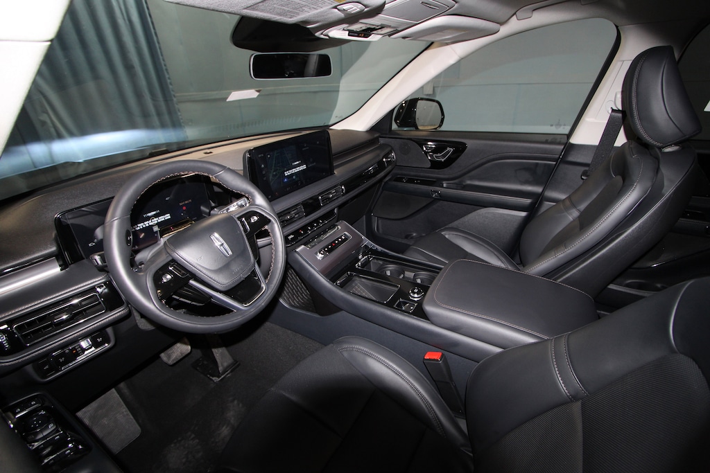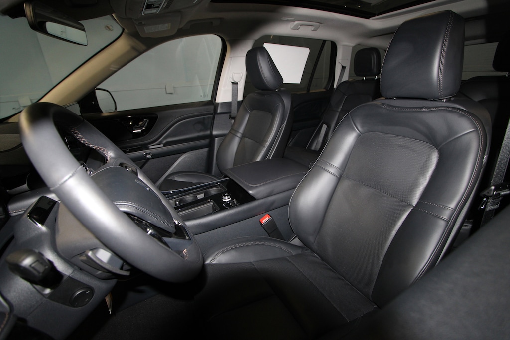 10 Speakers, 3rd row seats: split-bench, 4-Wheel Disc Brakes, ABS brakes, Adaptive suspension, Air Conditioning, All-Weather 1st & 2nd Row Floor Liners (16A), Alloy wheels, AM/FM radio: SiriusXM, Apple CarPlay/Android Auto, Audio memory, Auto Air Refresh, Auto Heated & Ventilated Driver & Passenger Seats, Auto High-beam Headlights, Auto-dimming door mirrors, Auto-dimming Rear-View mirror, Automatic temperature control, Brake assist, Bumpers: body-color, Compass, Delay-off headlights, Driver door bin, Driver vanity mirror, Dual front impact airbags, Dual front side impact airbags, Electronic Stability Control, Emergency communication system: 911 Assist, Equipment Group 101A, Exterior Parking Camera Rear, Four wheel independent suspension, Front anti-roll bar, Front Bucket Seats, Front Center Armrest, Front dual zone A/C, Front reading lights, Fully automatic headlights, Garage door transmitter, Heated door mirrors, Heated front seats, Heated steering wheel, HVAC memory, Illuminated entry, Knee airbag, Leather steering wheel, Lincoln BlueCruise Equipped (4-Years Included), Lincoln Connectivity Package (4-years included), Lincoln Digital Experience, Lincoln Soft Touch Heated Comfort Seats, Low tire pressure warning, Memory seat, Navigation System, Occupant sensing airbag, Outside temperature display, Overhead airbag, Overhead console, Panic alarm, Panoramic Vista Roof w/Power Shade, Passenger door bin, Passenger vanity mirror, Power door mirrors, Power driver seat, Power Liftgate, Power passenger seat, Power steering, Power Tilt & Telescoping Steering Column w/Memory, Power windows, Radio data system, Radio: Lincoln Premium AM/FM/HD Audio System, Rain sensing wipers, Rear air conditioning, Rear anti-roll bar, Rear audio controls, Rear reading lights, Rear window defroster, Rear window wiper, Remote keyless entry, Security system, SiriusXM, Speed control, Speed-Sensitive Wipers, Split folding rear seat, Spoiler, Steering wheel mounted A/C controls, Steering wheel mounted audio controls, Tachometer, Telescoping steering wheel, Tilt steering wheel, Traction control, Trip computer, Turn signal indicator mirrors, Variably intermittent wipers, Wheels: 20 Magnetic Bright-Machined Aluminum, Wheels: 21 Bright Machined Aluminum, Wireless Charging.