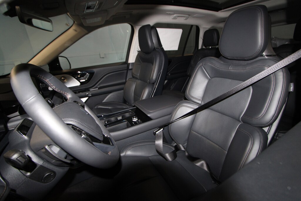 14 Speakers, 30-Way Perfect Position Seats with Active Motion, 3rd row seats: split-bench, 4-Wheel Disc Brakes, 40/Mini Console/40 Dual Captain's Chairs, ABS brakes, Adaptive Dynamic Bending Lighting, Adaptive Pixel LED Headlamps, Adaptive suspension, Advanced Heads-Up Display, Air Conditioning, Air Glide Suspension with Dynamic Lower Entry, All-Weather 1st and 2nd Row Floor Liners, Alloy wheels, AM/FM radio: SiriusXM, Apple CarPlay/Android Auto, Audio memory, Auto Air Refresh, Auto Heated and Ventilated Driver and Passenger Seats, Auto High-beam Headlights, Auto-dimming door mirrors, Auto-dimming Rear-View mirror, Automatic temperature control, Black Exterior Elements, Body-Color Exterior Elements, Brake assist, Bumpers: body-color, Compass, Delay-off headlights, Driver door bin, Driver vanity mirror, Dual front impact airbags, Dual front side impact airbags, Dynamic Handling Package, Electronic Stability Control, Emergency communication system: 911 Assist, Equipment Group 201A Reserve II, Four wheel independent suspension, Front anti-roll bar, Front Bucket Seats, Front Center Armrest, Front dual zone A/C, Front License Plate Bracket, Front reading lights, Full Rear Console, Fully automatic headlights, Garage door transmitter, Genuine wood console insert, Genuine wood dashboard insert, Heads-Up Display, Heated and Ventilated Rear Seats, Heated door mirrors, Heated front seats, Heated steering wheel, HVAC memory, Illuminated entry, Illuminated Lincoln Star in Grille, Illumination Package, Jet Appearance Package, Knee airbag, Leather steering wheel, Lincoln App, Lincoln BlueCruise Equipped (4-Years Included), Lincoln Connectivity Package (4-Years), Lincoln Digital Experience, Lincoln Dynamic Signature Lighting, Low tire pressure warning, Luxury Package, Memory seat, Navigation system: Google Maps, Occupant sensing airbag, Outside temperature display, Overhead airbag, Overhead console, Panic alarm, Passenger door bin, Passenger vanity mirror, Power door mirrors, Power driver seat, Power Liftgate, Power moonroof: Panoramic Vista Roof, Power passenger seat, Power steering, Power windows, Premium Leather Front Captain's Chairs, Radio data system, Radio: Revel Audio System with 14 Speakers, Radio: Revel Ultima 3D Audio System with 28 Speakers, Rain sensing wipers, Rear air conditioning, Rear anti-roll bar, Rear audio controls, Rear dual zone A/C, Rear reading lights, Rear window defroster, Rear window wiper, Remote keyless entry, Security system, SiriusXM, Speed control, Speed Dependent Lighting, Speed-Sensitive Wipers, Split folding rear seat, Spoiler, Steering wheel memory, Steering wheel mounted A/C controls, Steering wheel mounted audio controls, Tachometer, Telescoping steering wheel, Tilt steering wheel, Traction control, Trip computer, Turn signal indicator mirrors, Variably intermittent wipers, Ventilated front seats, Wheels: 21" Bright-Machined Aluminum with Dark Alloy Painted Pockets, Wheels: 22" Black Aluminum, Wheels: 22" Bright-Machined Aluminum with Magnetic Painted Pockets, Wireless Charging Pad.
