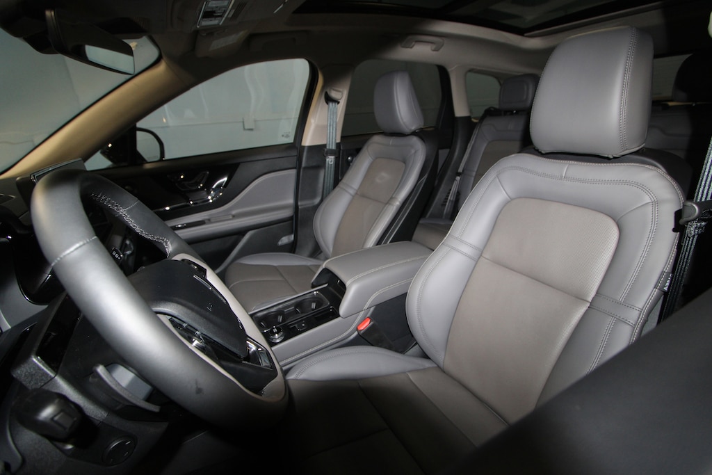 19 Bright Machined Aluminum Wheels, 2 Additional USB Ports in Rear of Center Console, 4-Wheel Disc Brakes, 60/40 EasyFold Rear Seat w/Power Seatback Release, 9 Speakers, ABS brakes, Air Conditioning, Alexa Built-In, Alloy wheels, AM/FM radio: SiriusXM with 360L, Apple CarPlay/Android Auto, Auto Air Refresh (Ultra Fresh Cabin), Auto High-beam Headlights, Auto-dimming Rear-View mirror, Automatic temperature control, Brake assist, Bumpers: body-color, Compass, Delay-off headlights, Driver door bin, Driver State Detection, Driver vanity mirror, Dual front impact airbags, Dual front side impact airbags, Electronic Stability Control, Emergency communication system: 911 Assist, Equipment Group 202A, Exterior Parking Camera Rear, Four wheel independent suspension, Frameless Auto Dimming Rearview Mirror, Front anti-roll bar, Front Bucket Seats, Front Center Armrest, Front dual zone A/C, Front reading lights, Fully automatic headlights, Hands-Free Liftgate, Head-Up Display, Heated door mirrors, Heated front seats, Heated Rear Seat, Heated Sideview Mirrors, Heated Steering Wheel, Heated/Ventilated Driver & Front Passenger Seats, Illuminated entry, Knee airbag, Leather steering wheel, Lincoln BlueCruise (4 Years Included), Low tire pressure warning, Memory seat, Navigation system: Connected Navigation (4-year trial), Occupant sensing airbag, Outside temperature display, Overhead airbag, Overhead console, Panic alarm, Panoramic Vista Roof w/Power Shade, Passenger door bin, Passenger vanity mirror, Phone As A Key (PAAK), Power door mirrors, Power driver seat, Power Liftgate, Power passenger seat, Power steering, Power Tilt/Telescoping Steering Column w/Memory, Power windows, Premium Leather-Trimmed Heated Captain's Chairs, Radio data system, Radio: Lincoln Premium Audio System w/MP3, Radio: Revel Audio System w/HD Radio & MP3, Rain Sensing Wipers, Rear anti-roll bar, Rear Parking Sensors, Rear reading lights, Rear seat center armrest, Rear window defroster, Rear window wiper, Remote keyless entry, Security system, SiriusXM w/360L Radio, Speed control, Speed-sensing steering, Speed-Sensitive Wipers, Split folding rear seat, Spoiler, Steering wheel mounted A/C controls, Steering wheel mounted audio controls, SYNC 4 Communications & Entertainment System, Tachometer, Telescoping steering wheel, Tilt steering wheel, Traction control, Trip computer, Universal Garage Door Opener, Variably intermittent wipers, Windshield Wiper De-Icer, Wireless Charging Pad.