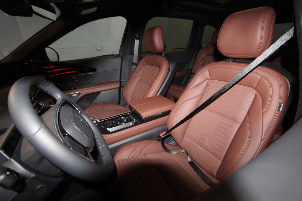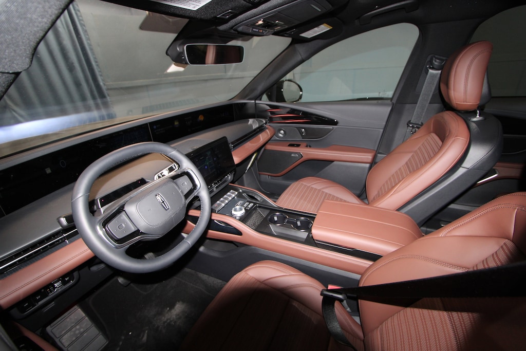 10 Speakers, 110V Power Converter, 4-Wheel Disc Brakes, ABS brakes, Adaptive suspension, Air Conditioning, Alloy wheels, AM/FM radio: SiriusXM with 360L, Apple CarPlay/Android Auto, Auto Air Refresh, Auto High-beam Headlights, Auto tilt-away steering wheel, Auto-dimming Rear-View mirror, Automatic temperature control, BlueCruise Equipped (4-Years Included), Brake assist, Bumpers: body-color, Compass, Delay-off headlights, Digital Scent, Driver door bin, Driver vanity mirror, Dual front impact airbags, Dual front side impact airbags, Electronic Stability Control, Emergency communication system: 911 Assist, Equipment Group 202A Reserve II, Exterior Parking Camera Rear, Four wheel independent suspension, Front anti-roll bar, Front Bucket Seats, Front Center Armrest w/Storage, Front dual zone A/C, Front reading lights, Fully automatic headlights, Garage door transmitter, Hands-Free Power Liftgate, Heated door mirrors, Heated front seats, Heated steering wheel, Illuminated entry, Knee airbag, Leather steering wheel, Lincoln Connectivity Package, Lincoln Digital Experience, Low tire pressure warning, Memory seat, Navigation System, Occupant sensing airbag, Outside temperature display, Overhead airbag, Overhead console, Panic alarm, Panoramic Vista Roof with Powershade, Passenger door bin, Passenger vanity mirror, Power door mirrors, Power driver seat, Power Liftgate, Power passenger seat, Power steering, Power windows, Premium Leather Trimmed Captain's Chairs, Radio data system, Radio: AM/FM Revel Audio System, Rain sensing wipers, Rear anti-roll bar, Rear Heated Seats with Switch Control, Rear reading lights, Rear seat center armrest, Rear window defroster, Rear window wiper, Remote keyless entry, Security system, SiriusXM with 360L, Speed control, Speed-sensing steering, Speed-Sensitive Wipers, Split folding rear seat, Spoiler, Steering wheel memory, Steering wheel mounted audio controls, Tachometer, Telescoping steering wheel, Tilt steering wheel, Traction control, Trip computer, Turn signal indicator mirrors, Variably intermittent wipers, Ventilated front seats.