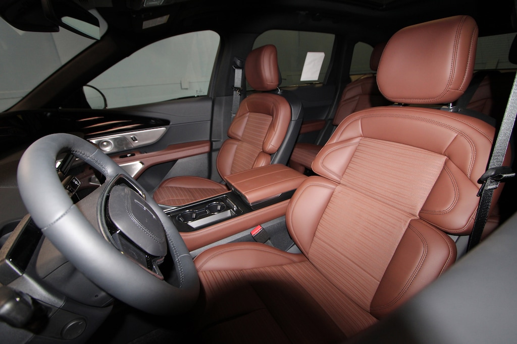 2.0L GTDI FHEV, 10 Speakers, 110V Power Converter, 4-Wheel Disc Brakes, ABS brakes, Adaptive suspension, Air Conditioning, Alloy wheels, AM/FM radio: SiriusXM with 360L, Apple CarPlay/Android Auto, Auto Air Refresh, Auto High-beam Headlights, Auto tilt-away steering wheel, Auto-dimming Rear-View mirror, Automatic temperature control, Black Exterior Elements, BlueCruise Equipped (4-Years Included), Body-Color Exterior Elements, Brake assist, Bumpers: body-color, Compass, Delay-off headlights, Digital Scent, Driver door bin, Driver vanity mirror, Dual front impact airbags, Dual front side impact airbags, Electronic Stability Control, Emergency communication system: 911 Assist, Equipment Group 203A Reserve III, Exterior Parking Camera Rear, Four wheel independent suspension, Front anti-roll bar, Front Bucket Seats, Front Center Armrest w/Storage, Front dual zone A/C, Front reading lights, Fully automatic headlights, Garage door transmitter, Hands-Free Power Liftgate, Heated door mirrors, Heated front seats, Heated steering wheel, Illuminated entry, Jet Appearance Package, Knee airbag, Leather steering wheel, Lincoln Connectivity Package, Lincoln Digital Experience, Low tire pressure warning, Memory seat, Navigation System, Occupant sensing airbag, Outside temperature display, Overhead airbag, Overhead console, Panic alarm, Panoramic Vista Roof w/Powershade, Passenger door bin, Passenger vanity mirror, Power door mirrors, Power driver seat, Power Liftgate, Power moonroof: Panoramic Vista Roof, Power passenger seat, Power steering, Power windows, Premium Leather Trimmed Captain's Chairs, Premium Leather-Trimmed Heat/Vent Captain's Chairs, Radio data system, Radio: AM/FM Revel Audio System, Radio: AM/FM Revel Ultima 3D Audio System, Rain sensing wipers, Rear anti-roll bar, Rear Heated Seats w/Switch Control, Rear reading lights, Rear seat center armrest, Rear window defroster, Rear window wiper, Remote keyless entry, Security system, SiriusXM w/360L, Speed control, Speed-sensing steering, Speed-Sensitive Wipers, Split folding rear seat, Spoiler, Steering wheel memory, Steering wheel mounted audio controls, Tachometer, Telescoping steering wheel, Tilt steering wheel, Traction control, Trip computer, Turn signal indicator mirrors, Variably intermittent wipers, Ventilated front seats, Wheels: 21 Bright Machined Aluminum, Wheels: 22 Satin Dark Luster Aluminum, 2.0L GTDI FHEV.
