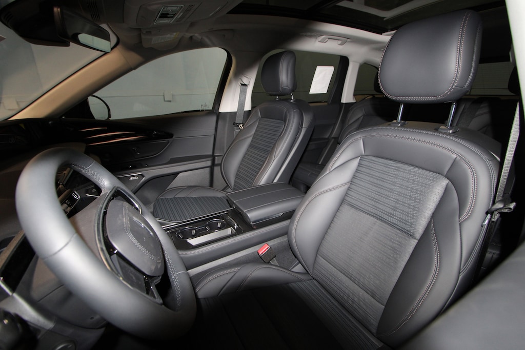 2.0L GTDI FHEV, 10 Speakers, 110V Power Converter, 4-Wheel Disc Brakes, ABS brakes, Adaptive suspension, Air Conditioning, Alloy wheels, AM/FM radio: SiriusXM with 360L, Apple CarPlay/Android Auto, Auto Air Refresh, Auto High-beam Headlights, Auto tilt-away steering wheel, Auto-dimming Rear-View mirror, Automatic temperature control, Black Exterior Elements, BlueCruise Equipped (4-Years Included), Body-Color Exterior Elements, Brake assist, Bumpers: body-color, Compass, Delay-off headlights, Digital Scent, Driver door bin, Driver vanity mirror, Dual front impact airbags, Dual front side impact airbags, Electronic Stability Control, Emergency communication system: 911 Assist, Equipment Group 202A Reserve II, Exterior Parking Camera Rear, Four wheel independent suspension, Front anti-roll bar, Front Bucket Seats, Front Center Armrest w/Storage, Front dual zone A/C, Front reading lights, Fully automatic headlights, Garage door transmitter, Hands-Free Power Liftgate, Heated door mirrors, Heated front seats, Heated steering wheel, Illuminated entry, Jet Appearance Package, Knee airbag, Leather steering wheel, Lincoln Connectivity Package, Lincoln Digital Experience, Low tire pressure warning, Memory seat, Navigation System, Occupant sensing airbag, Outside temperature display, Overhead airbag, Overhead console, Panic alarm, Panoramic Vista Roof w/Powershade, Passenger door bin, Passenger vanity mirror, Power door mirrors, Power driver seat, Power Liftgate, Power moonroof: Panoramic Vista Roof, Power passenger seat, Power steering, Power windows, Premium Leather Trimmed Captain's Chairs, Radio data system, Radio: AM/FM Revel Audio System, Rain sensing wipers, Rear anti-roll bar, Rear Heated Seats w/Switch Control, Rear reading lights, Rear seat center armrest, Rear window defroster, Rear window wiper, Remote keyless entry, Security system, SiriusXM w/360L, Speed control, Speed-sensing steering, Speed-Sensitive Wipers, Split folding rear seat, Spoiler, Steering wheel memory, Steering wheel mounted audio controls, Tachometer, Telescoping steering wheel, Tilt steering wheel, Traction control, Trip computer, Turn signal indicator mirrors, Variably intermittent wipers, Ventilated front seats, Wheels: 21 Bright Machined Aluminum, Wheels: 22 Satin Dark Luster Aluminum, 2.0L GTDI FHEV.
