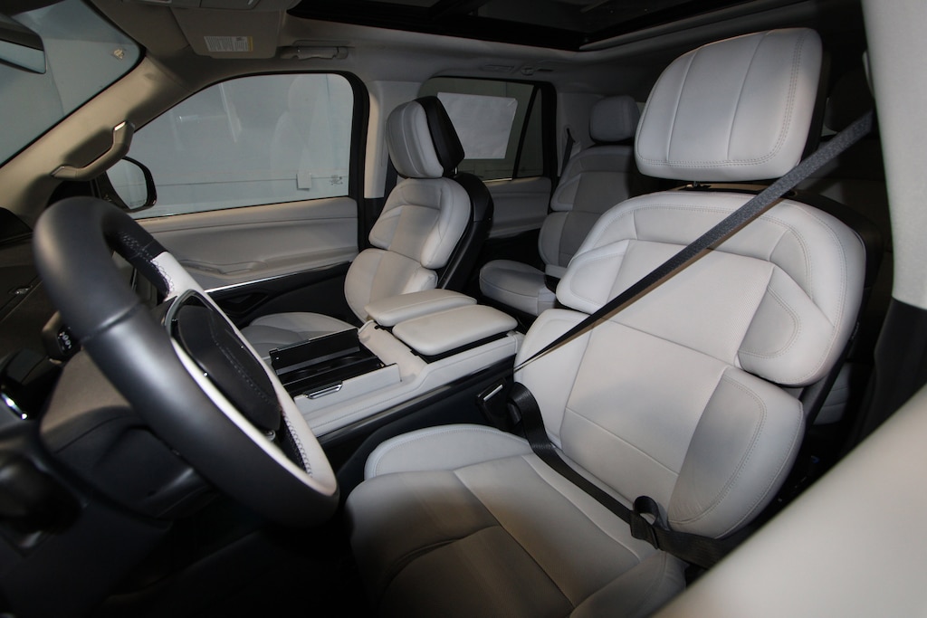 4WD, Gray Leather, 26mm Engine Radiator, 28 Speakers, 2nd Row Heated & Ventilated Dual Captain's Chair, 3rd row seats: split-bench, 4-Wheel Disc Brakes, ABS brakes, Adaptive suspension, Air Conditioning, Alloy wheels, AM/FM radio: SiriusXM with 360L, Apple CarPlay/Android Auto, Audio memory, Auto Heated/Ventilated Premium Leather Captain's Chairs, Auto High-beam Headlights, Auto Start-Stop Technology, Auto tilt-away steering wheel, Auto-dimming door mirrors, Auto-dimming Rear-View mirror, Auto-leveling suspension, Automatic temperature control, BlueCruise Equipped (4-Years Included), Brake assist, Bumpers: body-color, Compass, Delay-off headlights, Driver door bin, Driver vanity mirror, Driver's Seat Mounted Armrest, Dual front impact airbags, Dual front side impact airbags, Electronic Stability Control, Emergency communication system: 911 Assist, Equipment Group 202A Reserve II, Exterior Parking Camera Rear, Four wheel independent suspension, Front anti-roll bar, Front Bucket Seats, Front dual zone A/C, Front reading lights, Fully automatic headlights, Garage door transmitter, Heated door mirrors, Heated front seats, Heated rear seats, Heated steering wheel, Heavy-Duty Trailer Tow Package, HVAC memory, Illuminated entry, Leather steering wheel, Lincoln App, Lincoln Connectivity Package (4-Years Included), Lincoln Digital Experience, Lincoln Security Package, Low tire pressure warning, Memory seat, Navigation system: Connected Navigation (1-year trial), Occupant sensing airbag, Outside temperature display, Overhead airbag, Overhead console, Panic alarm, Passenger door bin, Passenger seat mounted armrest, Passenger vanity mirror, Power adjustable rear head restraints, Power door mirrors, Power driver seat, Power moonroof: Panoramic Vista Roof, Power passenger seat, Power steering, Power windows, Radio data system, Radio: Revel Ultima 3D Audio System, Rain sensing wipers, Rear air conditioning, Rear anti-roll bar, Rear audio controls, Rear reading lights, Rear window defroster, Rear window wiper, Reclining 3rd row seat, Remote keyless entry, Security system, SiriusXM with 360L (3 Months Trial), Speed control, Speed-sensing steering, Speed-Sensitive Wipers, Split folding rear seat, Spoiler, Steering wheel memory, Steering wheel mounted audio controls, Tachometer, Telescoping steering wheel, Tilt steering wheel, Traction control, Trailer Brake Controller, Trip computer, Turn signal indicator mirrors, Variably intermittent wipers, Ventilated front seats, Wheels: 22 Dark Tarnished Aluminum, Wheels: 24 Bright Machined Aluminum, 4WD, Gray Leather.