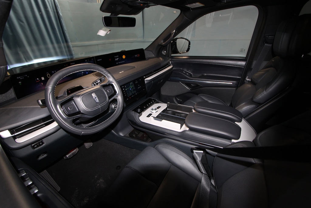 26mm Engine Radiator, 28 Speakers, 2nd Row Heated & Ventilated Dual Captain's Chair, 3rd row seats: split-bench, 4-Wheel Disc Brakes, ABS brakes, Adaptive suspension, Air Conditioning, Alloy wheels, AM/FM radio: SiriusXM with 360L, Apple CarPlay/Android Auto, Audio memory, Auto Heated/Ventilated Premium Leather Captain's Chairs, Auto High-beam Headlights, Auto Start-Stop Technology, Auto tilt-away steering wheel, Auto-dimming door mirrors, Auto-dimming Rear-View mirror, Auto-leveling suspension, Automatic temperature control, Black Accent Badge, Black Accent Interior Pack, Black Beltline Molding, Black Painted Roof Rails, BlueCruise Equipped (4-Years Included), Brake assist, Bumpers: body-color, Compass, Delay-off headlights, Driver door bin, Driver vanity mirror, Driver's Seat Mounted Armrest, Dual front impact airbags, Dual front side impact airbags, Electronic Stability Control, Emergency communication system: 911 Assist, Exterior Parking Camera Rear, Four wheel independent suspension, Front anti-roll bar, Front Bucket Seats, Front Bumper Fascia, Front dual zone A/C, Front reading lights, Fully automatic headlights, Garage door transmitter, Heated door mirrors, Heated front seats, Heated rear seats, Heated steering wheel, Heavy-Duty Trailer Tow Package, HVAC memory, Illuminated entry, Jet Appearance Package, Leather steering wheel, Lincoln App, Lincoln Connectivity Package (4-Years Included), Lincoln Digital Experience, Lincoln Lit Star, Lincoln Security Package, Low tire pressure warning, Memory seat, Navigation system: Connected Navigation (1-year trial), Occupant sensing airbag, Outside temperature display, Overhead airbag, Overhead console, Panic alarm, Passenger door bin, Passenger seat mounted armrest, Passenger vanity mirror, Power adjustable rear head restraints, Power door mirrors, Power driver seat, Power moonroof: Panoramic Vista Roof, Power passenger seat, Power steering, Power windows, Radio data system, Radio: Revel Ultima 3D Audio System, Rain sensing wipers, Rear air conditioning, Rear anti-roll bar, Rear audio controls, Rear reading lights, Rear window defroster, Rear window wiper, Reclining 3rd row seat, Remote keyless entry, Security system, SiriusXM with 360L (3 Months Trial), Speed control, Speed-sensing steering, Speed-Sensitive Wipers, Split folding rear seat, Spoiler, Steering wheel memory, Steering wheel mounted audio controls, Tachometer, Telescoping steering wheel, Tilt steering wheel, Traction control, Trailer Brake Controller, Trip computer, Turn signal indicator mirrors, Unique Lincoln Grille Pillar Black Surround, Variably intermittent wipers, Ventilated front seats, Wheels: 22" Dark Tarnished Aluminum, Wheels: 22" High-Gloss Ebony Aluminum.