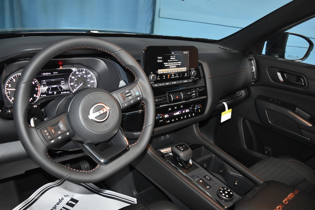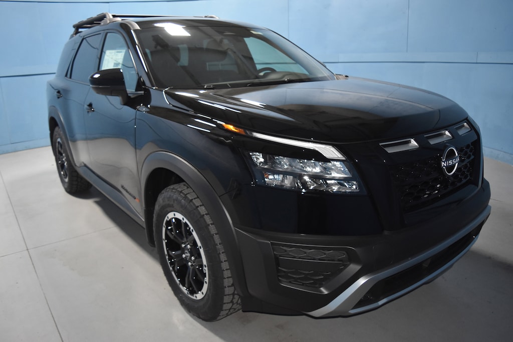 Super Black 2025 Nissan Pathfinder Rock Creek 4WD 9-Speed Automatic 3.5L V6 DOHC 4WD, 3rd row seats: bench, 4-Wheel Disc Brakes, 6 Speakers, ABS brakes, Air Conditioning, Alloy wheels, AM/FM radio: SiriusXM, Auto High-beam Headlights, Automatic temperature control, Brake assist, Delay-off headlights, Driver door bin, Driver vanity mirror, Dual front impact airbags, Dual front side impact airbags, Electronic Stability Control, Emergency communication system, Four wheel independent suspension, Front anti-roll bar, Front Bucket Seats, Front Center Armrest, Front dual zone A/C, Front fog lights, Front reading lights, Fully automatic headlights, Heated door mirrors, Heated Front Bucket Seats, Heated front seats, Illuminated entry, Knee airbag, Leather steering wheel, Leatherette-Appointed Seating Surfaces, Low tire pressure warning, Nissan USB Charging Cable Set, NissanConnect featuring Apple CarPlay and Android Auto, Occupant sensing airbag, Outside temperature display, Overhead airbag, Overhead console, Panic alarm, Passenger door bin, Passenger vanity mirror, Power door mirrors, Power driver seat, Power Liftgate, Power steering, Power windows, Radio data system, Radio: AM/FM Audio System w/NissanConnect, Rear air conditioning, Rear anti-roll bar, Rear Parking Sensors, Rear reading lights, Rear side impact airbag, Rear window defroster, Rear window wiper, Reclining 3rd row seat, Remote keyless entry, Rock Creek AS Floor Liners & Cargo Area Protector, Rock Creek Roof Rack, Roof rack, Security system, Speed control, Speed-sensing steering, Split folding rear seat, Spoiler, Steering wheel mounted audio controls, Tachometer, Telescoping steering wheel, Tilt steering wheel, Traction control, Trip computer, Turn signal indicator mirrors, Variably intermittent wipers, Wheels: 18 x 8J Machined Alloy w/Black Finish, 4WD.