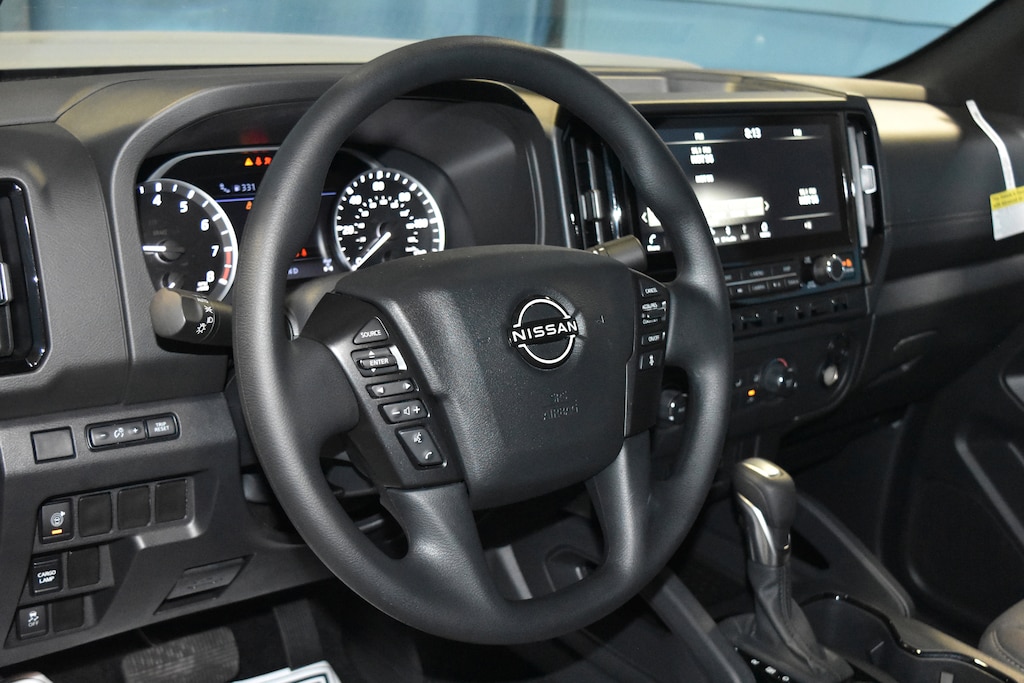 Boulder Gray Pearl 2026 Nissan Frontier SV 4WD 9-Speed Automatic with Overdrive 3.8L DI DOHC 24V V6 4WD, 17 Alloy Wheels, 3.692 Axle Ratio, 4-Wheel Disc Brakes, 6 Speakers, ABS brakes, Air Conditioning, Alloy wheels, AM/FM radio: SiriusXM, Anti-whiplash front head restraints, Auto High-beam Headlights, Black Tailgate Logo Insert, Blind Spot Warning, Brake assist, Bumpers: body-color, Carpeted Floor Mats, Dark Armor Package, Dark FRONTIER Tailgate Lettering, Dark Grill Surround/Mesh/Inner Fascia, Dark Mirror Caps, Delay-off headlights, Driver door bin, Driver vanity mirror, Dual front impact airbags, Dual front side impact airbags, Electronic Stability Control, Emergency communication system, Front anti-roll bar, Front Bucket Seats, Front Center Armrest, Front reading lights, Front wheel independent suspension, Fully automatic headlights, Illuminated entry, Knee airbag, Low tire pressure warning, Occupant sensing airbag, Overhead airbag, Overhead console, Panic alarm, Passenger door bin, Passenger vanity mirror, Power door mirrors, Power driver seat, Power steering, Power windows, Premium Cloth Seat Trim, Premium Paint, Radio data system, Radio: SXM/AM/FM/AUX/USB Audio System, Rear anti-roll bar, Rear seat center armrest, Rear side impact airbag, Rear step bumper, Remote keyless entry, Security system, Speed control, Speed-sensing steering, Splash Guards, Split folding rear seat, Steering wheel mounted audio controls, Tachometer, Telescoping steering wheel, Tilt steering wheel, Tow Package, Tow/Haul Mode Switch, Traction control, Trip computer, USB Charging Cable Kit, Variably intermittent wipers, Voltmeter, Wheels: 17 Dark, Wireless Apple CarPlay/Wireless Android Auto, 4WD.