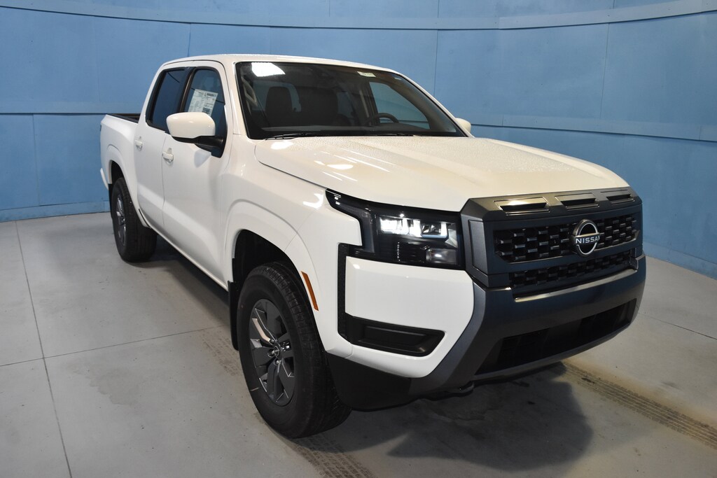 Glacier White 2026 Nissan Frontier SV 4WD 9-Speed Automatic with Overdrive 3.8L DI DOHC 24V V6 4WD, 120V Power Outlet in Bed, 120V Power Outlet in Rear Center Console, 17 Alloy Wheels, 3.692 Axle Ratio, 4-Wheel Disc Brakes, 6 Speakers, ABS brakes, Air Conditioning, Alloy wheels, AM/FM radio: SiriusXM, Anti-whiplash front head restraints, Auto High-beam Headlights, Bed Under-Rail Lighting, Blind Spot Warning, Brake assist, Bumpers: body-color, Carpeted Floor Mats, Delay-off headlights, Driver door bin, Driver vanity mirror, Dual front impact airbags, Dual front side impact airbags, Electronic Stability Control, Electronic Tailgate Lock, Emergency communication system, Front anti-roll bar, Front Bucket Seats, Front Center Armrest, Front reading lights, Front wheel independent suspension, Fully automatic headlights, Heated Front Seats, Heated Leather Steering Wheel, Heated Outside Mirrors, HVAC - Dual-Zone Front Auto A/C, I-Key w/Request Switches on O/S Handles, Illuminated entry, Knee airbag, Locking Glove Box, Low tire pressure warning, Occupant sensing airbag, Overhead airbag, Overhead console, Panic alarm, Passenger door bin, Passenger vanity mirror, Power door mirrors, Power driver seat, Power steering, Power windows, Premium Cloth Seat Trim, Radio data system, Radio: SXM/AM/FM/AUX/USB Audio System, Rear anti-roll bar, Rear seat center armrest, Rear side impact airbag, Rear step bumper, Remote Engine Starter, Remote keyless entry, Security system, Speed control, Speed-sensing steering, Splash Guards, Split folding rear seat, Spray-In Bedliner, Steering wheel mounted audio controls, SV Convenience Package, Tachometer, Telescoping steering wheel, Tilt steering wheel, Tow Package (T11), Tow/Haul Mode Switch, Traction control, Trailer Hitch w/Wiring Harness, Trip computer, Utili-Track System, Variably intermittent wipers, Voltmeter, Wireless Apple CarPlay/Wireless Android Auto, 4WD.
