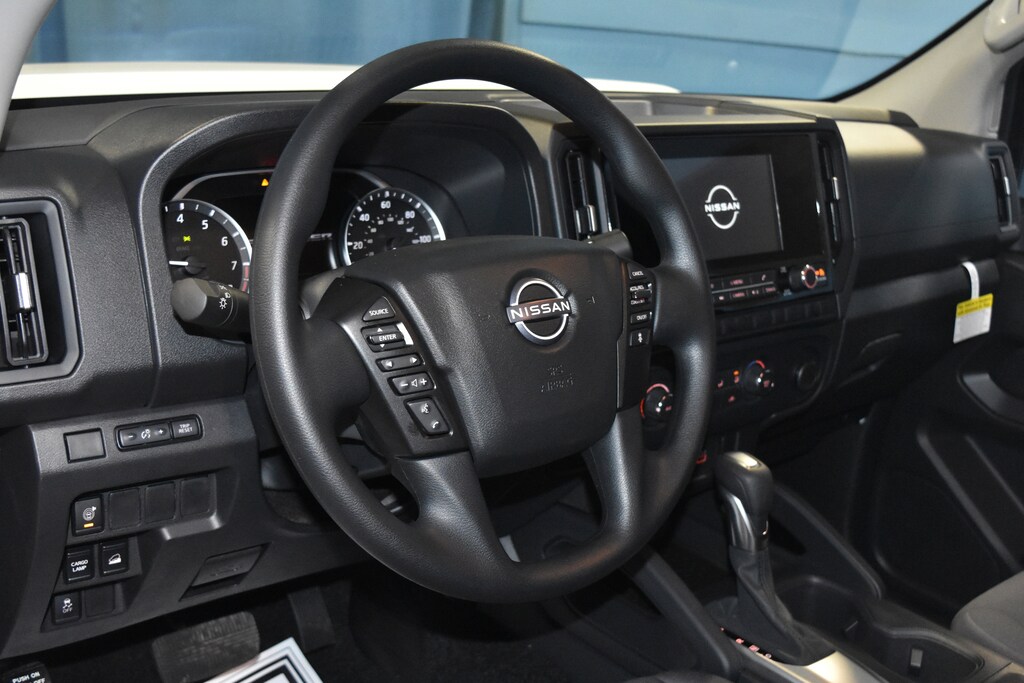 Glacier White 2026 Nissan Frontier S 4WD 9-Speed Automatic with Overdrive 3.8L DI DOHC 24V V6 4WD, 16 Styled Steel Wheels, 3.692 Axle Ratio, 4 Speakers, 4-Wheel Disc Brakes, ABS brakes, Air Conditioning, Anti-whiplash front head restraints, Apple CarPlay/Android Auto, Auto High-beam Headlights, Blind Spot Warning, Brake assist, Bumpers: body-color, Cloth Seat Trim, Delay-off headlights, Driver door bin, Dual front impact airbags, Dual front side impact airbags, Electronic Stability Control, Emergency communication system, Front anti-roll bar, Front Bucket Seats, Front Center Armrest, Front reading lights, Front wheel independent suspension, Fully automatic headlights, Illuminated entry, Knee airbag, Low tire pressure warning, Occupant sensing airbag, Overhead airbag, Overhead console, Panic alarm, Passenger door bin, Power steering, Power windows, Radio data system, Radio: AM/FM/AUX/USB Audio System, Rear side impact airbag, Rear step bumper, Remote keyless entry, Speed control, Speed-sensing steering, Split folding rear seat, Steering wheel mounted audio controls, Tachometer, Telescoping steering wheel, Tilt steering wheel, Traction control, Trip computer, Variably intermittent wipers, 4WD.