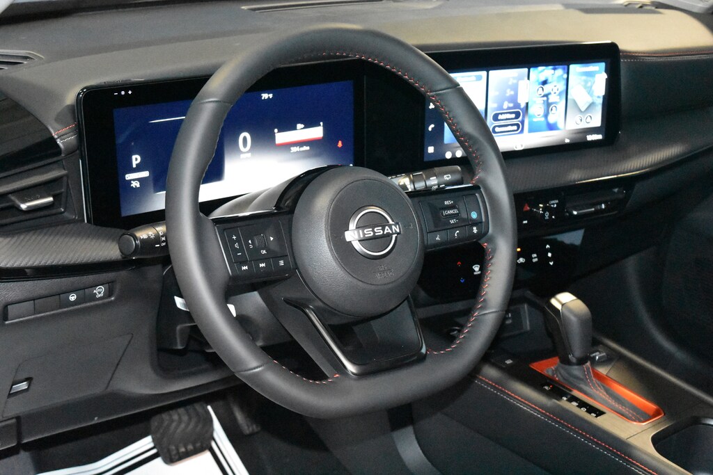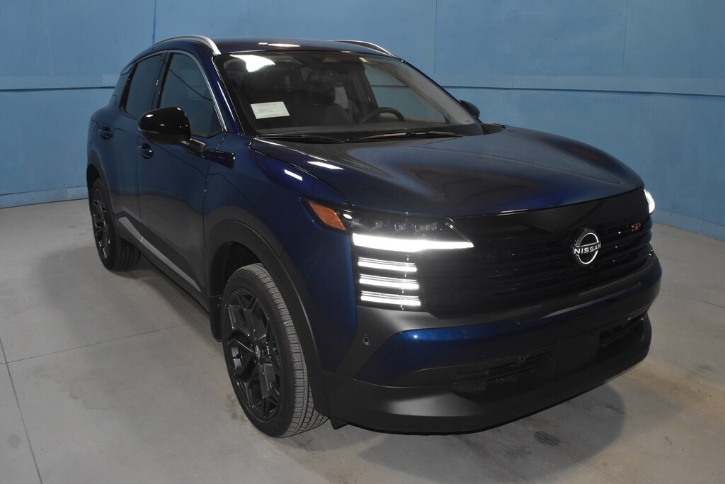 Deep Blue Pearl 2026 Nissan Kicks SR FWD CVT with Xtronic 2.0L DOHC 17 Alloy Wheels, 4-Wheel Disc Brakes, 6 Speakers, ABS brakes, Air Conditioning, Alloy wheels, AM/FM radio, Auto High-beam Headlights, Automatic temperature control, Brake assist, Bumpers: body-color, Carpeted Floor Mats and Underfloor Protector, Delay-off headlights, Driver door bin, Driver vanity mirror, Dual front impact airbags, Dual front side impact airbags, Electronic Stability Control, Emergency communication system: NissanConnect Services, Exterior Parking Camera Rear, Front anti-roll bar, Front Bucket Seats, Front Center Armrest, Front reading lights, Front wheel independent suspension, Fully automatic headlights, Garage door transmitter: myQ Connected Garage, Illuminated entry, Knee airbag, Leather Shift Knob, Leather steering wheel, Low tire pressure warning, NissanConnect featuring Apple CarPlay and Android Auto, Occupant sensing airbag, Outside temperature display, Overhead airbag, Overhead console, Panic alarm, Passenger door bin, Passenger vanity mirror, Power door mirrors, Power steering, Power windows, Radio data system, Radio: AM/FM/SiriusXM Audio System, Rear anti-roll bar, Rear reading lights, Rear seat center armrest, Rear side impact airbag, Rear window defroster, Rear window wiper, Remote keyless entry, Security system, Speed control, Speed-sensing steering, Splash Guards, Split folding rear seat, Spoiler, Sport Leatherette with Cloth Insert Seat Trim, Sport steering wheel, Steering wheel mounted audio controls, Tachometer, Telescoping steering wheel, Tilt steering wheel, Traction control, Trip computer, Turn signal indicator mirrors, Variably intermittent wipers, Wheels: 19 Dark Gray Alloy.