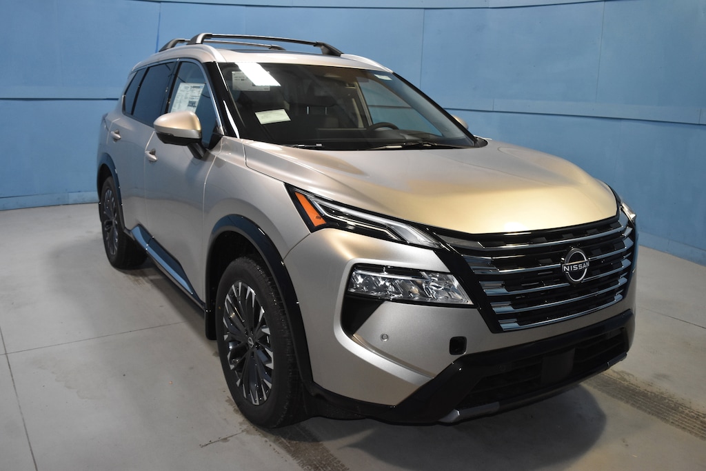 Champagne Silver Metallic 2026 Nissan Rogue Platinum AWD CVT with Xtronic 1.5L DOHC AWD, 10 Speakers, 4-Wheel Disc Brakes, ABS brakes, Air Conditioning, Alloy wheels, AM/FM radio: SiriusXM w/360L, Auto High-beam Headlights, Auto-dimming Rear-View mirror, Automatic temperature control, Black Splash Guards (set of 4), Bose Premium Audio System, Brake assist, Bumpers: body-color, Chrome Rear Bumper Protector, Delay-off headlights, Driver door bin, Driver vanity mirror, Dual front impact airbags, Dual front side impact airbags, Electronic Stability Control, Emergency communication system: NissanConnect Services, First Aid Kit, Floor Mats with 2-Piece Cargo Area Protector, Four wheel independent suspension, Front anti-roll bar, Front Bucket Seats, Front Center Armrest, Front dual zone A/C, Front reading lights, Fully automatic headlights, Garage door transmitter: myQ Connected Garage, Head-Up Display, Heads-Up Display, Heated door mirrors, Heated Front Bucket Seats, Heated front seats, Heated Rear Seats, Heated steering wheel, Illuminated entry, Knee airbag, Low tire pressure warning, Memory seat, Motion-Activated Power Liftgate, Navigation system: Google Maps, Occupant sensing airbag, Outside temperature display, Overhead airbag, Overhead console, Panic alarm, Passenger door bin, Passenger vanity mirror, Platinum Premium Package, Power door mirrors, Power driver seat, Power Liftgate, Power moonroof, Power passenger seat, Power steering, Power windows, Quilted Semi-Aniline Leather-Appointed Seat Trim, Radio data system, Radio: AM/FM NissanConnect with Navigation, Rear anti-roll bar, Rear reading lights, Rear seat center armrest, Rear side impact airbag, Rear window defroster, Rear window wiper, Remote keyless entry, Roof Rail Cross Bars, Security system, Speed control, Speed-sensing steering, Speed-Sensitive Wipers, Split folding rear seat, Spoiler, Steering wheel mounted audio controls, Tachometer, Telescoping steering wheel, Tilt steering wheel, Traction control, Tri-Zone Automatic Temperature Control, Trip computer, Turn signal indicator mirrors, Variably intermittent wipers, Wheels: 19 Unique Dark Painted Aluminum Alloy, Wireless Apple CarPlay/Wireless Android Auto, AWD.