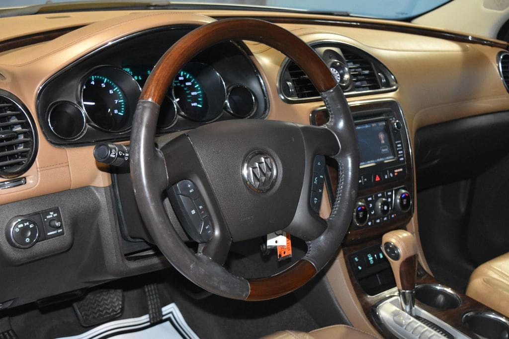 2014 Buick Enclave Premium Group Recent Arrival! VEHICLE SOLD AS-IS. We want you to shop confidently for your next used car at D-Patrick Nissan. This vehicleâs low price is reflective of its age, condition, and mileage and we do not warrant its mechanical or overall condition. This vehicle is provided with a free to you CarFax vehicle history report. This is an AS-IS vehicle and is not available for additional service plans. *Prices listed do not include a $250 documentation fee, applicable tax, title, tags, license, or $195 service and preparation. All pricing, vehicle information, and features (such as accessories and color) are believed to be accurate, but we do not warrant or guarantee such accuracy. The prices shown above may vary from region to region, and incentives are subject to change. Some offers listed may not be available to all customers. All online sale commitments are subject to confirmation of continued availability of vehicle. Once availability is confirmed, online sale agreement becomes binding upon the parties. If any information found on the website is thought to be erroneous, please verify information with a customer service representative. See dealer for full details. FWD, 10 Speakers, 19 9-Spoke Chrome-Clad Aluminum Wheels, 3.16 Axle Ratio, 3rd row seats: split-bench, 4-Wheel Disc Brakes, 7-Passenger Seating, 8-Way Power Driver Seat Adjuster, 8-Way Power Passenger Seat Adjuster, ABS brakes, Air Conditioning, Alloy wheels, AM/FM radio: SiriusXM, Articulating Headlights, Auto tilt-away steering wheel, Auto-dimming door mirrors, Auto-dimming Rear-View mirror, Automatic temperature control, Bose Advanced 10-Speaker Audio System, Bose Performance Enhanced System, Brake assist, Bumpers: body-color, CD player, Compass, Delay-off headlights, Driver door bin, Driver vanity mirror, Dual front impact airbags, Dual front side impact airbags, Electronic Stability Control, Emergency communication system: OnStar Directions & Connections, ETR AM/FM Stereo w/CD Player & MP3 Playback, Exterior Parking Camera Rear, Four wheel independent suspension, Front anti-roll bar, Front Bucket Seats, Front Center Armrest w/Storage, Front dual zone A/C, Front reading lights, Fully automatic headlights, Garage door transmitter, Heated & Cooled Driver & Front Passenger Seats, Heated door mirrors, Heated front seats, High intensity discharge headlights: Bi-Xenon, Illuminated entry, Leather steering wheel, Low tire pressure warning, Memory seat, Memory Settings, Occupant sensing airbag, Outside temperature display, Overhead airbag, Panic alarm, Passenger door bin, Passenger vanity mirror, Perforated Leather Seating Surfaces, Power door mirrors, Power driver seat, Power Liftgate, Power passenger seat, Power steering, Power Tilt & Telescopic Steering Column, Power windows, Power-Folding Heated Body-Color Outside Mirrors, Premium audio system: IntelliLink, Premium Package, Premium Ride Suspension, Radio data system, Rear air conditioning, Rear anti-roll bar, Rear audio controls, Rear Audio System Controls, Rear reading lights, Rear window defroster, Rear window wiper, Remote keyless entry, Roof rack: rails only, Security system, Side Blind Zone Alert w/Cross Traffic Alert, SiriusXM Satellite Radio, Speed control, Speed-sensing steering, Spoiler, Steering wheel memory, Steering wheel mounted audio controls, Tachometer, Telescoping steering wheel, Tilt steering wheel, Traction control, Trip computer, Turn signal indicator mirrors, Variably intermittent wipers, Ventilated front seats, Voltmeter, FWD. Clean CARFAX. 4D Sport Utility Premium Group 6-Speed Automatic 3.6L V6 SIDI DOHC VVT FWD Champagne Silver Metallic CALL TODAY 812-473-6500 and shop online at www.dpatricknissan.com.