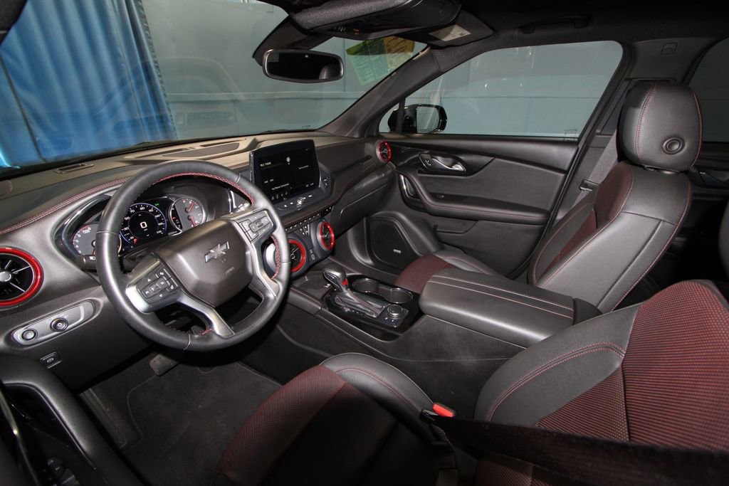 2023 Chevrolet Blazer RS Recent Arrival! We want you to shop confidently for your next used car at D-Patrick Boonville Ford and We make it EASY! Buy this used vehicle 100% online or in-store, EASY. Saving time at the dealership, EASY! Financing, EASY! Finding the car you love at the price you want, EASY! This pre-owned vehicle was put through an extensive inspection before hitting our lot. Because of this, we are able to offer a 3-month/3,000-mile comprehensive limited warranty. You also get our Love It or Return It 5-day, 300-mile Exchange Policy. See our website for more details on both. We also offer extended service plans, vehicle protection plans, and offer a CarFax vehicle history report. *Prices listed do not include a $250 documentation fee, applicable tax, title, tags, license, or $195 service and preparation. All pricing, vehicle information, and features (such as accessories and color) are believed to be accurate, but we do not warrant or guarantee such accuracy. The prices shown above may vary from region to region, and incentives are subject to change. Some offers listed may not be available to all customers. All online sale commitments are subject to confirmation of continued availability of vehicle. Once availability is confirmed, online sale agreement becomes binding upon the parties. If any information found on the website is thought to be erroneous, please verify information with a customer service representative. See dealer for full details. Looking to sell your current vehicle? We buy cars for cash. 3.49 Final Drive Axle Ratio, 4-Wheel Disc Brakes, 6-Way Power Front Passenger Seat Adjuster, 8 Speakers, 8-Way Power Driver Seat Adjuster, ABS brakes, Air Conditioning, Alloy wheels, AM/FM radio: SiriusXM with 360L, Apple CarPlay/Android Auto, Auto High-beam Headlights, Auto-dimming door mirrors, Auto-dimming Rear-View mirror, Automatic temperature control, Bose Premium 8-Speaker Audio System Feature, Brake assist, Bumpers: body-color, Child-Seat-Sensing Airbag, Compass, Delay-off headlights, Driver door bin, Driver vanity mirror, Dual front impact airbags, Dual front side impact airbags, Electronic Stability Control, Emergency communication system: OnStar and Chevrolet connected services capable, Enhanced Convenience Package, Four wheel independent suspension, Front anti-roll bar, Front Bucket Seats, Front Center Armrest, Front dual zone A/C, Front reading lights, Fully automatic headlights, Garage door transmitter, Heated door mirrors, Heated Driver & Front Passenger Seats, Heated front seats, Heated Rear Outboard Seating Positions, Heated Steering Wheel, Heated steering wheel, Illuminated entry, Knee airbag, Leather Shift Knob, Low tire pressure warning, Memory Settings For Driver Seat & Exterior Mirrors, Navigation System, Occupant sensing airbag, Outside temperature display, Overhead airbag, Overhead console, Panic alarm, Passenger door bin, Passenger vanity mirror, Perforated Leather-Appointed Seat Trim, Power door mirrors, Power Driver Lumbar Control, Power driver seat, Power Liftgate, Power Panoramic Tilt-Sliding Sunroof, Power passenger seat, Power steering, Power Tilt & Telescoping Steering Column, Power windows, Preferred Equipment Group 1RS, Premium audio system: Chevrolet Infotainment 3 Premium, Radio data system, Radio: Chevrolet Infotainment 3 Premium System, Rear anti-roll bar, Rear Park Assist w/Audible Warning, Rear reading lights, Rear seat center armrest, Rear window defroster, Rear window wiper, Remote keyless entry, Ride & Handling Suspension, Security system, SiriusXM w/360L, Speed control, Speed-sensing steering, Split folding rear seat, Spoiler, Steering wheel mounted audio controls, Tachometer, Telescoping steering wheel, Tilt steering wheel, Traction control, Trip computer, Turn signal indicator mirrors, Variably intermittent wipers, Ventilated Driver & Front Passenger Seats, Voltmeter, Wheels: 20 Technical Gray Aluminum. CARFAX One-Owner. Clean CARFAX. 4D Sport Utility RS 9-Speed Aut