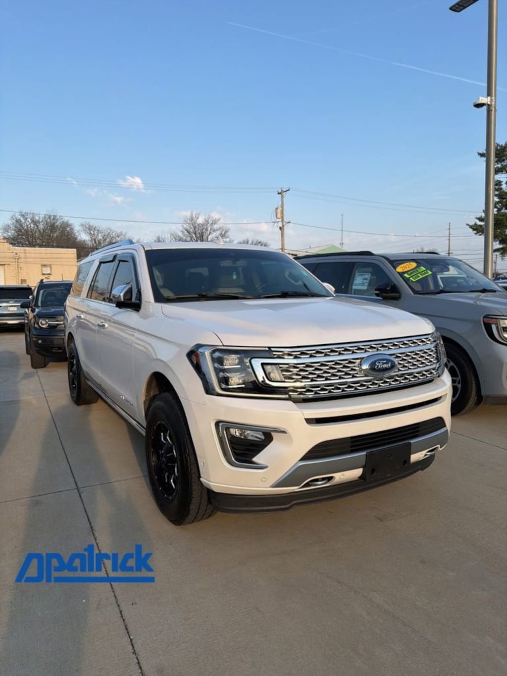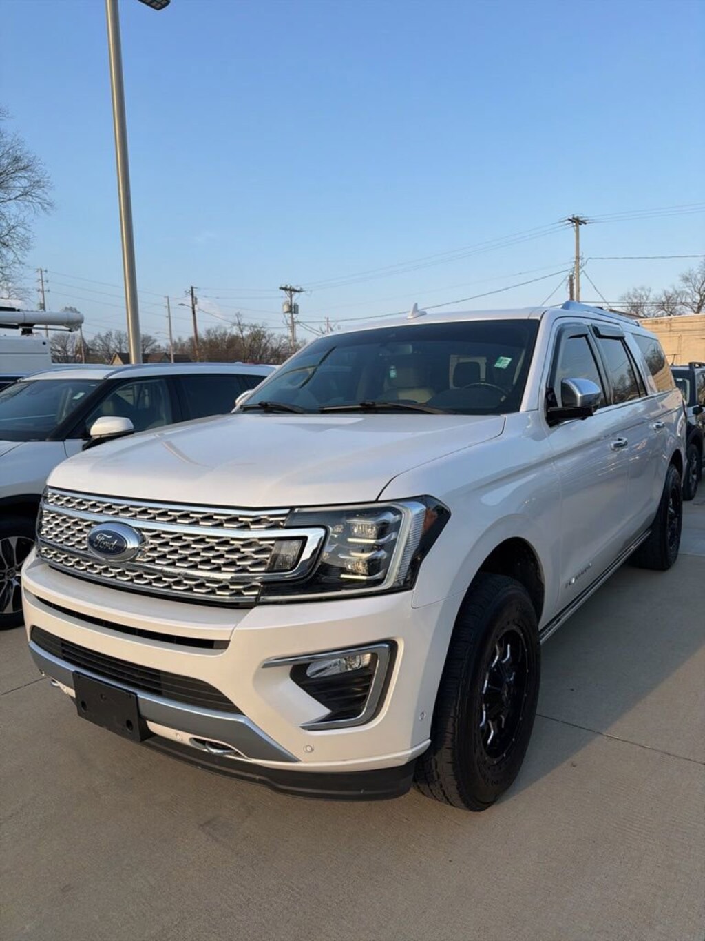 2018 Ford Expedition Max Platinum Recent Arrival! VEHICLE SOLD AS-IS. We want you to shop confidently for your next used car at The BIG Ford Store, D-Patrick Ford. We are located on Highway 41 and Walnut in Evansville, right next to the Lloyd Expressway. This vehicleâs low price is reflective of its age, condition, and mileage and we do not warrant its mechanical or overall condition. This vehicle is provided with a CarFax vehicle history report. This is an AS-IS vehicle and is not available for additional service plans. *Prices listed do not include a $250 documentation fee, applicable tax, title, tags, license, or $195 service and preparation. All pricing, vehicle information, and features (such as accessories and color) are believed to be accurate, but we do not warrant or guarantee such accuracy. The prices shown above may vary from region to region, and incentives are subject to change. Some offers listed may not be available to all customers. All online sale commitments are subject to confirmation of continued availability of vehicle. Once availability is confirmed, online sale agreement becomes binding upon the parties. If any information found on the website is thought to be erroneous, please verify information with a customer service representative. See dealer for full details. Looking to sell your current vehicle? We buy cars for cash. Every test drive at D-Patrick Ford in Evansville earns $10 to a local charity. Schedule your test drive today! 12 Speakers, 1st & 2nd Row Floor Liners, 22 Polished Aluminum Wheels, 2nd Row Bucket Seats, 3.31 Axle Ratio, 3rd row seats: split-bench, 4-Wheel Disc Brakes, ABS brakes, Adaptive suspension, Adjustable pedals, Air Conditioning, Alloy wheels, AM/FM radio: SiriusXM, AppLink/Apple CarPlay and Android Auto, Auto High-beam Headlights, Auto-dimming door mirrors, Auto-dimming Rear-View mirror, Automatic temperature control, Brake assist, Bumpers: body-color, CD player, Compass, Delay-off headlights, Driver door bin, Driver vanity mirror, Dual front impact airbags, Dual front side impact airbags, Dual-Headrest Rear-Seat Entertainment System, Electronic Stability Control, Emergency communication system: SYNC 3 911 Assist, Equipment Group 600B, Exterior Parking Camera Rear, Four wheel independent suspension, Front anti-roll bar, Front Bucket Seats, Front Center Armrest, Front dual zone A/C, Front fog lights, Front reading lights, Fully automatic headlights, Garage door transmitter, Genuine wood console insert, Genuine wood dashboard insert, Genuine wood door panel insert, Heated & Cooled Perforated Leather Fr Bucket Seats, Heated door mirrors, Heated front seats, Heated rear seats, Heated steering wheel, Illuminated entry, Lane Departure Warning System, Leather steering wheel, Low tire pressure warning, Memory seat, Navigation System, Occupant sensing airbag, Outside temperature display, Overhead airbag, Overhead console, Panic alarm, Passenger door bin, Passenger vanity mirror, Pedal memory, Power door mirrors, Power driver seat, Power Liftgate, Power moonroof, Power passenger seat, Power steering, Power windows, Radio data system, Radio: B&O PLAY Premium Audio System by harman, Rain sensing wipers, Rear air conditioning, Rear anti-roll bar, Rear audio controls, Rear reading lights, Rear window defroster, Rear window wiper, Reclining 3rd row seat, Remote keyless entry, Roof rack, Security system, SiriusXM Satellite Radio, Speed control, Speed-sensing steering, Speed-Sensitive Wipers, Split folding rear seat, Steering wheel memory, Steering wheel mounted audio controls, SYNC 3 Communications & Entertainment System, Tachometer, Telescoping steering wheel, Tilt steering wheel, Traction control, Trip computer, Turn signal indicator mirrors, Variably intermittent wipers, Ventilated front seats, Voltmeter. 4D Sport Utility Platinum 10-Speed Automatic EcoBoost 3.5L V6 GTDi DOHC 24V Twin Turbocharged 4WD White Platinum CALL TODAY (812) 625-4823 OR SHOP ONLINE AT WWW.DPATRICKFORD.COM.