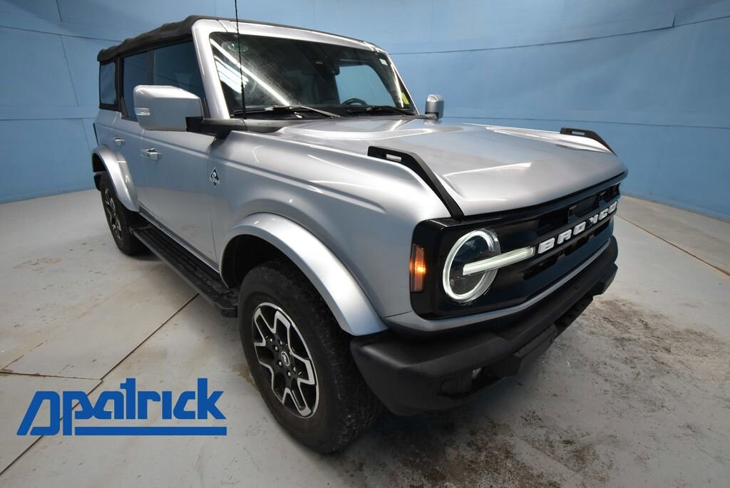 2022 Ford Bronco Outer Banks Recent Arrival! We want you to shop confidently for your next used car at D-Patrick Boonville Ford and We make it EASY! Buy this used vehicle 100% online or in-store, EASY. Saving time at the dealership, EASY! Financing, EASY! Finding the car you love at the price you want, EASY! This pre-owned vehicle was put through an extensive inspection before hitting our lot. Because of this, we are able to offer a 3-month/3,000-mile comprehensive limited warranty. You also get our Love It or Return It 5-day, 300-mile Exchange Policy. See our website for more details on both. We also offer extended service plans, vehicle protection plans, and offer a CarFax vehicle history report. *Prices listed do not include a $250 documentation fee, applicable tax, title, tags, license, or $195 service and preparation. All pricing, vehicle information, and features (such as accessories and color) are believed to be accurate, but we do not warrant or guarantee such accuracy. The prices shown above may vary from region to region, and incentives are subject to change. Some offers listed may not be available to all customers. All online sale commitments are subject to confirmation of continued availability of vehicle. Once availability is confirmed, online sale agreement becomes binding upon the parties. If any information found on the website is thought to be erroneous, please verify information with a customer service representative. See dealer for full details. Looking to sell your current vehicle? We buy cars for cash. 12 LCD Capacitive Touchscreen w/Swipe Capability, 18 Bright Machined Aluminum Wheels, 2 Smart Charging USB Ports In Dashboard, 360-Degree Camera, 4-Wheel Disc Brakes, 4.27 Axle Ratio, 6 Speakers, ABS brakes, Adaptive Cruise Control, Additional Sound Deadening, Air Conditioning, Alloy wheels, AM/FM radio: SiriusXM with 360L, AM/FM Stereo, Auto High-beam Headlights, Auto-dimming Rear-View mirror, Automatic temperature control, Brake assist, Compass, Connected Built-In Navigation, Connected Navigation, Delay-off headlights, Driver door bin, Driver vanity mirror, Dual front impact airbags, Dual front side impact airbags, Electronic Stability Control, Emergency communication system: 911 Assist, Equipment Group 314A Lux Package, Evasive Steering Assist, Exterior Parking Camera Rear, Front anti-roll bar, Front Bucket Seats, Front Center Armrest, Front dual zone A/C, Front fog lights, Front License Plate Bracket, Front Parking Sensors, Front reading lights, Front wheel independent suspension, Fully automatic headlights, Heated Cloth Bucket Seats, Heated door mirrors, Heated front seats, Heated Steering Wheel, Illuminated entry, Information on Demand Panel, Integrated roll-over protection, Leather Shift Knob, Low tire pressure warning, Navigation system: Connected Navigation, Occupant sensing airbag, Outside temperature display, Overhead airbag, Overhead console, Panic alarm, Passenger door bin, Passenger vanity mirror, Power door mirrors, Power steering, Power windows, Radio data system, Radio: B&O Sound System by Bang & Olufsen, Remote keyless entry, Security system, Sideview Mirrors, SiriusXM Radio w/360L, Speed control, Split folding rear seat, Steering wheel mounted audio controls, SYNC 4, Tachometer, Telescoping steering wheel, Tilt steering wheel, Traction control, Trip computer, Universal Garage Door Opener, Variably intermittent wipers, Voltmeter, Wireless Charging Pad. CARFAX One-Owner. 4D Sport Utility Outer Banks 10-Speed Automatic 2.3L EcoBoost I-4 4WD Silver Metallic CALL US TODAY BEFORE THIS ONE GETS AWAY-- (812) 897-5838 or shop online at www.boonvilleford.com.