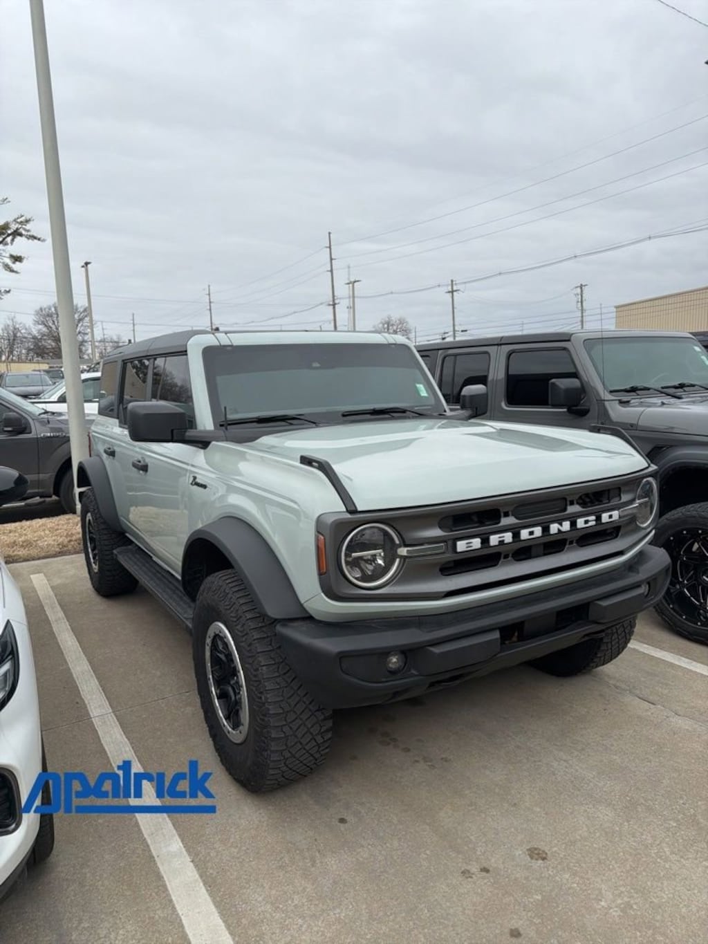 2024 Ford Bronco Big Bend Recent Arrival! We want you to shop confidently for your next used car at The BIG Ford Store, D-Patrick Ford. We are located on Highway 41 and Walnut in Evansville, right next to the Lloyd Expressway. Buy this used vehicle 100% online or in-store. This pre-owned vehicle was put through an extensive inspection before hitting our lot. Because of this, we are able to offer a 3-month/3,000-mile comprehensive limited warranty. You also get our Love It or Return It 5-day, 300-mile Exchange Policy. See our website for more details on both. We also offer extended service plans, vehicle protection plans, and offer a CarFax vehicle history report. *Prices listed do not include a $250 documentation fee, applicable tax, title, tags, license, or $195 service and preparation. All pricing, vehicle information, and features (such as accessories and color) are believed to be accurate, but we do not warrant or guarantee such accuracy. The prices shown above may vary from region to region, and incentives are subject to change. Some offers listed may not be available to all customers. All online sale commitments are subject to confirmation of continued availability of vehicle. Once availability is confirmed, online sale agreement becomes binding upon the parties. If any information found on the website is thought to be erroneous, please verify information with a customer service representative. See dealer for full details. Looking to sell your current vehicle? We buy cars for cash. Every test drive at D-Patrick Ford in Evansville earns $10 to a local charity. Schedule your test drive today! 2-Door Intelligent Access w/Lock/Unlock, 4-Wheel Disc Brakes, 4.7 Final Drive Ratio, 7 Speakers, ABS brakes, Air Conditioning, Alloy wheels, AM/FM radio: SiriusXM with 360L, AM/FM Stereo, Ambient Footwell Lighting, Auto High-Beam Headlamps, Auto High-beam Headlights, Auto-Dimming Interior Rear-View Mirror, Auxiliary Switches, BLIS Blind Spot Information System, Brake assist, Carbonized Gray Molded-In-Color Hard Top, Compass, Connected Navigation, Delay-off headlights, Dr & Pass Illuminated Sliding Visor Vanity Mirrors, Driver door bin, Driver vanity mirror, Dual front impact airbags, Dual front side impact airbags, Dual Smart Charging USB Ports, Dual-Zone Electronic Automatic Temperature Control, Electronic Stability Control, Emergency communication system: 911 Assist, Equipment Group 222A Mid Package, Exterior Parking Camera Rear, Front anti-roll bar, Front Bucket Seats, Front Center Armrest, Front fog lights, Front reading lights, Front Row Heated Seats, Front Row Top Panels Storage Bag, Front wheel independent suspension, Fully automatic headlights, Hard Top Sound Deadening Headliner, Heated door mirrors, High Clearance Fender Flares, High Clearance Suspension, Illuminated entry, Integrated roll-over protection, Lane-Keeping System, Leather Shift Knob, Low tire pressure warning, Marine Grade Vinyl Bucket Seats, Occupant sensing airbag, Outside temperature display, Overhead airbag, Overhead console, Panic alarm, Passenger door bin, Passenger vanity mirror, Position-Sensitive Bilstein Shock Absorbers, Powder Coated Tube Step, Power door mirrors, Power Outlet - Back Side of Center Floor Console, Power steering, Power windows, Pre-Collision Assist w/Automatic Emergency Braking, Radio data system, Rear Parking Sensors, Rear-View Camera, Rear-Window Defroster & Washer, Remote keyless entry, Sasquatch Package, Security system, SiriusXM Radio w/360L, Speed control, Split folding rear seat, Steering wheel mounted audio controls, SYNC 4, Tachometer, Telescoping steering wheel, Tilt steering wheel, Traction control, Trip computer, Variably intermittent wipers, Wheels: 17" Black High Gloss-Painted Aluminum, Wheels: 17" Carbonized Gray-Painted Aluminum. CARFAX One-Owner. 4D Sport Utility Big Bend 10-Speed Automatic 2.3L EcoBoost I-4 4WD Cactus CALL TODAY (812) 625-4823 OR SHOP ONLINE AT WWW.DPATRICKFORD.COM.