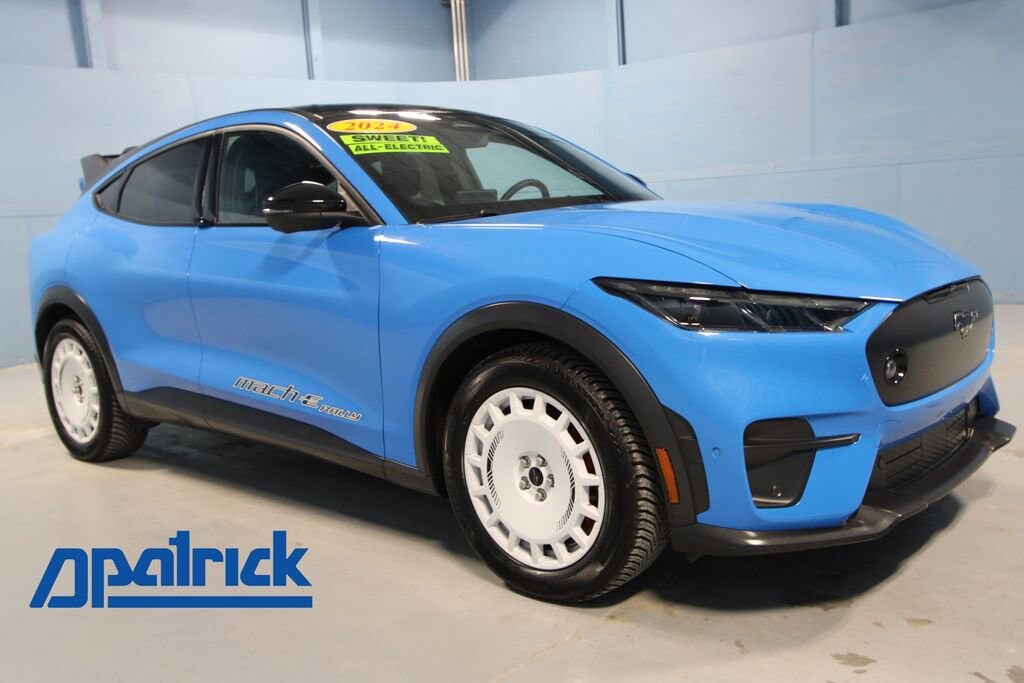 2024 Ford Mustang Mach-E GT We want you to shop confidently for your next used car at The BIG Ford Store, D-Patrick Ford. We are located on Highway 41 and Walnut in Evansville, right next to the Lloyd Expressway. Buy this used vehicle 100% online or in-store. This pre-owned vehicle was put through an extensive inspection before hitting our lot. Because of this, we are able to offer a 3-month/3,000-mile comprehensive limited warranty. You also get our Love It or Return It 5-day, 300-mile Exchange Policy. See our website for more details on both. We also offer extended service plans, vehicle protection plans, and offer a free to you CarFax vehicle history report. *Prices listed do not include a $250 documentation fee, applicable tax, title, tags, license, or $195 service and preparation. All pricing, vehicle information, and features (such as accessories and color) are believed to be accurate, but we do not warrant or guarantee such accuracy. The prices shown above may vary from region to region, and incentives are subject to change. Some offers listed may not be available to all customers. All online sale commitments are subject to confirmation of continued availability of vehicle. Once availability is confirmed, online sale agreement becomes binding upon the parties. If any information found on the website is thought to be erroneous, please verify information with a customer service representative. See dealer for full details. Looking to sell your current vehicle? We buy cars for cash. Every test drive at D-Patrick Ford in Evansville earns $10 to a local charity. Schedule your test drive today! 10 Speakers, 4-Wheel Disc Brakes, ABS brakes, Adaptive suspension, Air Conditioning, Alloy wheels, AM/FM radio: SiriusXM with 360L, AM/FM Stereo, Apple CarPlay/Android Auto, Auto High-beam Headlights, Auto-dimming Rear-View mirror, Automatic temperature control, Axle Ratio: 9.791, Black Painted Steel Roof, BlueCruise Equipped (3-Year Plan), Brake assist, Bumpers: body-color, Compass, Delay-off headlights, Driver door bin, Driver vanity mirror, Dual front impact airbags, Dual front side impact airbags, Electronic Stability Control, Emergency communication system: 911 Assist, Equipment Group 400A, Exterior Parking Camera Rear, Four wheel independent suspension, Front anti-roll bar, Front Bucket Seats, Front Center Armrest, Front dual zone A/C, Front reading lights, Front Recovery Hook, Fully automatic headlights, Garage door transmitter, Heated door mirrors, Heated front seats, Heated Perforated ActiveX Performance Seats, Heated steering wheel, Hood & Decklid Stripe Delete, Hood & Decklid Stripes, Illuminated entry, Knee airbag, Low tire pressure warning, Mach-E Rally Door Graphics, Memory seat, Mobile Power Cord (120V/240V), Mustang Mach-E GT Performance Upgrade, Mustang Mach-E Rally, Navigation system: Connected Navigation, Occupant sensing airbag, Outside temperature display, Overhead airbag, Overhead console, Panic alarm, Passenger door bin, Passenger vanity mirror, Power door mirrors, Power driver seat, Power Liftgate, Power passenger seat, Power steering, Power windows, Radio data system, Rain sensing wipers, Rallycross-Tuned MagneRide Damping System, Rear anti-roll bar, Rear seat center armrest, Rear side impact airbag, Rear window defroster, Rear window wiper, Remote keyless entry, Security system, SiriusXM Radio w/360L, Speed control, Speed-sensing steering, Speed-Sensitive Wipers, Split folding rear seat, Spoiler, Steering wheel mounted audio controls, SYNC 4A w/Enhanced Voice Recognition, Telescoping steering wheel, Tilt steering wheel, Traction control, Trip computer, Turn signal indicator mirrors, Unique Grille Shield in Dark Carbonized Gray, Variably intermittent wipers, Wheels: 20 Machined-Face Aluminum. CARFAX One-Owner. Clean CARFAX. 4D Sport Utility GT Single-Speed Automatic Electric Motor AWD Grabber Blue Metallic CALL TODAY (812) 625-4823 OR SHOP ONLINE AT WWW.DPATRICKFORD.COM.