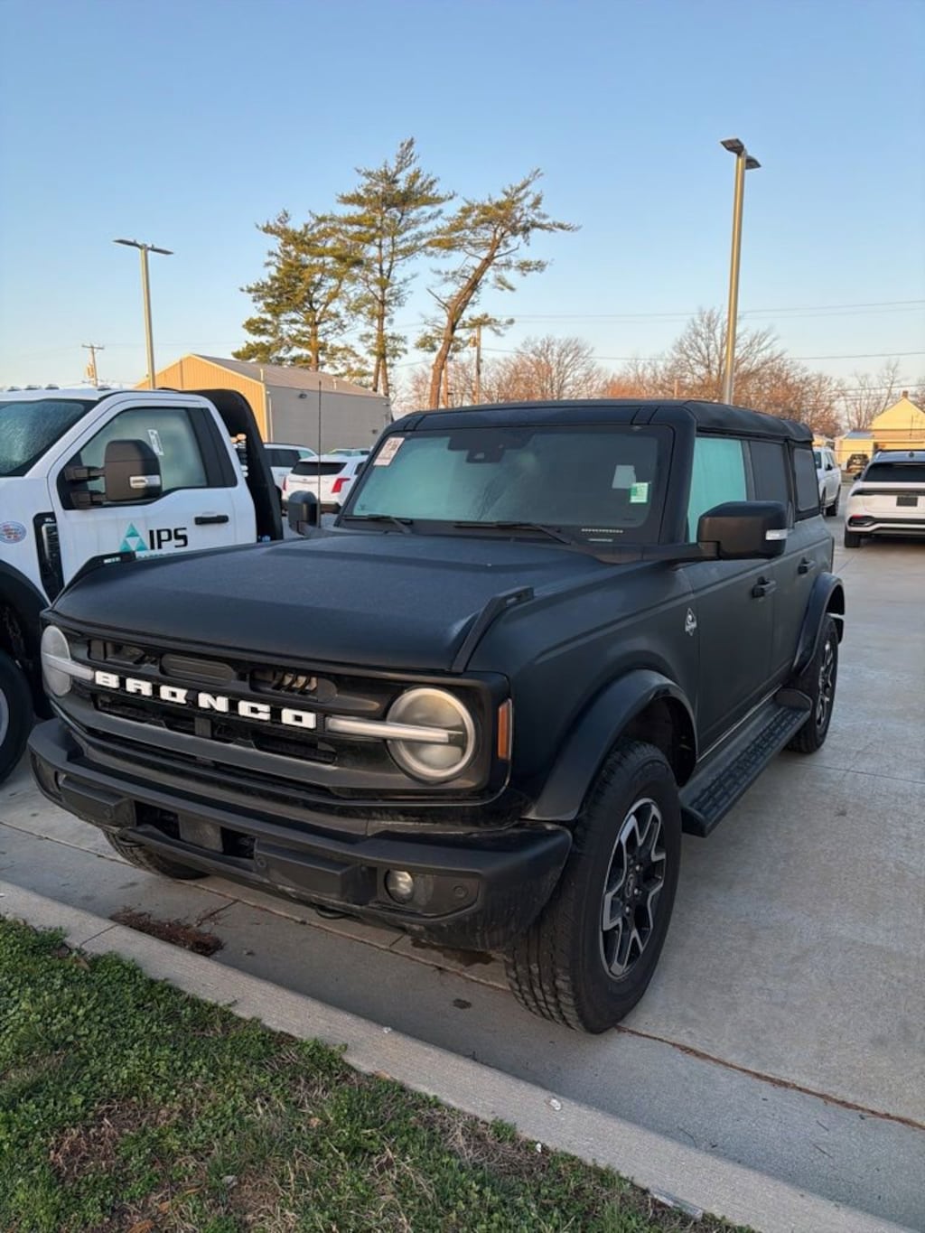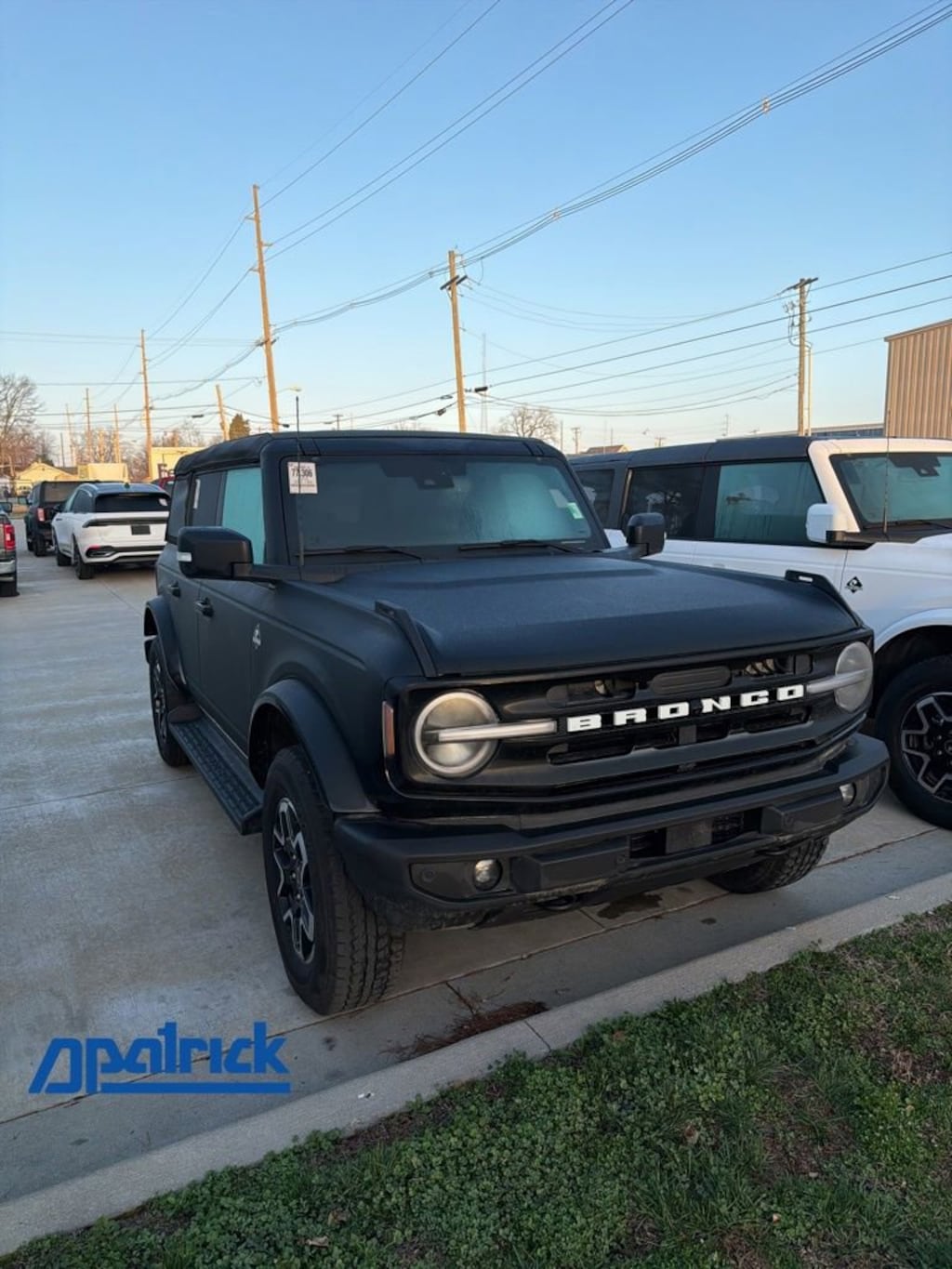 2025 Ford Bronco Outer Banks Recent Arrival! We want you to shop confidently for your next used car at The BIG Ford Store, D-Patrick Ford. We are located on Highway 41 and Walnut in Evansville, right next to the Lloyd Expressway. Buy this used vehicle 100% online or in-store. This pre-owned vehicle was put through an extensive inspection before hitting our lot. Because of this, we are able to offer a 3-month/3,000-mile comprehensive limited warranty. You also get our Love It or Return It 5-day, 300-mile Exchange Policy. See our website for more details on both. We also offer extended service plans, vehicle protection plans, and offer a CarFax vehicle history report. *Prices listed do not include a $250 documentation fee, applicable tax, title, tags, license, or $195 service and preparation. All pricing, vehicle information, and features (such as accessories and color) are believed to be accurate, but we do not warrant or guarantee such accuracy. The prices shown above may vary from region to region, and incentives are subject to change. Some offers listed may not be available to all customers. All online sale commitments are subject to confirmation of continued availability of vehicle. Once availability is confirmed, online sale agreement becomes binding upon the parties. If any information found on the website is thought to be erroneous, please verify information with a customer service representative. See dealer for full details. Looking to sell your current vehicle? We buy cars for cash. Every test drive at D-Patrick Ford in Evansville earns $10 to a local charity. Schedule your test drive today! 18" Bright Machined Aluminum Wheels, 3.73 Axle Ratio, 4-Wheel Disc Brakes, 7 Speakers, ABS brakes, Air Conditioning, Alloy wheels, AM/FM radio: SiriusXM with 360L, AM/FM Stereo, Auto High-beam Headlights, Auto-dimming Rear-View mirror, Automatic temperature control, Brake assist, Compass, Connected Navigation, Delay-off headlights, Driver door bin, Driver vanity mirror, Dual front impact airbags, Dual front side impact airbags, Electronic Stability Control, Emergency communication system: 911 Assist, Equipment Group 314A Lux Package, Exterior Parking Camera Rear, Front & Rear Floor Liners, Front anti-roll bar, Front Bucket Seats, Front Center Armrest, Front dual zone A/C, Front fog lights, Front reading lights, Front wheel independent suspension, Fully automatic headlights, Heated door mirrors, Heated front seats, Heated Leather-Trimmed/Vinyl Bucket Seats, Heated steering wheel, Illuminated entry, Integrated roll-over protection, Internet access capable: FordPass Connect, Leather Shift Knob, Low tire pressure warning, Navigation system: Connected Navigation, Occupant sensing airbag, Outside temperature display, Overhead airbag, Overhead console, Panic alarm, Passenger door bin, Passenger vanity mirror, Power door mirrors, Power driver seat, Power passenger seat, Power steering, Power windows, Radio data system, Rear seat center armrest, Remote keyless entry, Security system, SiriusXM w/360L, Speed control, Split folding rear seat, Steering wheel mounted audio controls, SYNC 4, Tachometer, Telescoping steering wheel, Tilt steering wheel, Traction control, Trip computer, Variably intermittent wipers, Voltmeter. CARFAX One-Owner. 4D Sport Utility Outer Banks 10-Speed Automatic 2.3L EcoBoost I-4 4WD Shadow Black CALL TODAY (812) 625-4823 OR SHOP ONLINE AT WWW.DPATRICKFORD.COM.