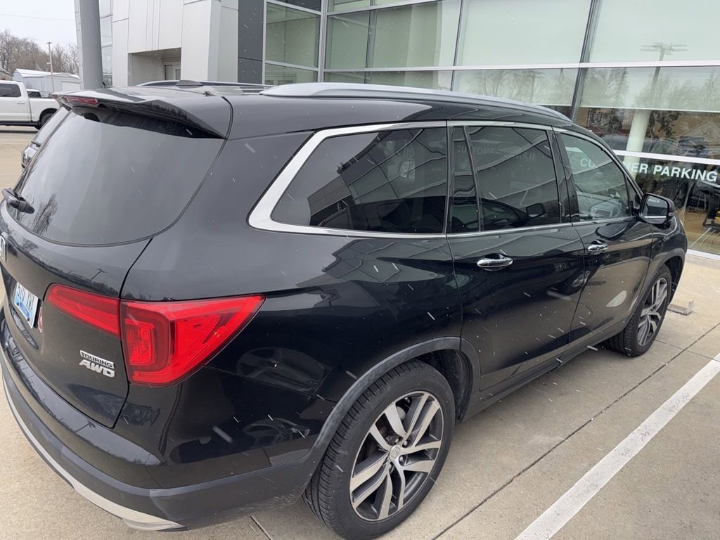 2018 Honda Pilot Touring Recent Arrival! VEHICLE SOLD AS-IS. We want you to shop confidently for your next used car at The BIG Ford Store, D-Patrick Ford. We are located on Highway 41 and Walnut in Evansville, right next to the Lloyd Expressway. This vehicleâs low price is reflective of its age, condition, and mileage and we do not warrant its mechanical or overall condition. This vehicle is provided with a CarFax vehicle history report. This is an AS-IS vehicle and is not available for additional service plans. *Prices listed do not include a $250 documentation fee, applicable tax, title, tags, license, or $195 service and preparation. All pricing, vehicle information, and features (such as accessories and color) are believed to be accurate, but we do not warrant or guarantee such accuracy. The prices shown above may vary from region to region, and incentives are subject to change. Some offers listed may not be available to all customers. All online sale commitments are subject to confirmation of continued availability of vehicle. Once availability is confirmed, online sale agreement becomes binding upon the parties. If any information found on the website is thought to be erroneous, please verify information with a customer service representative. See dealer for full details. Looking to sell your current vehicle? We buy cars for cash. Every test drive at D-Patrick Ford in Evansville earns $10 to a local charity. Schedule your test drive today! AWD, 10 Speakers, 20" Alloy Wheels, 3rd row seats: split-bench, 4-Wheel Disc Brakes, 4.334 Axle Ratio, A/V remote, ABS brakes, Air Conditioning, Alloy wheels, AM/FM radio: SiriusXM, Apple CarPlay/Android Auto, Auto-dimming Rear-View mirror, Automatic temperature control, Brake assist, Bumpers: body-color, Compass, Delay-off headlights, Driver door bin, Driver vanity mirror, Dual front impact airbags, Dual front side impact airbags, Electronic Stability Control, Exterior Parking Camera Rear, Four wheel independent suspension, Front anti-roll bar, Front Bucket Seats, Front Center Armrest, Front dual zone A/C, Front fog lights, Front reading lights, Fully automatic headlights, Garage door transmitter: HomeLink, Headphones, Heated door mirrors, Heated Front Bucket Seats, Heated front seats, Honda Satellite-Linked Navigation System, Illuminated entry, Leather Shift Knob, Leather-Trimmed Seats, Low tire pressure warning, Memory seat, Navigation System, Occupant sensing airbag, Outside temperature display, Overhead airbag, Overhead console, Panic alarm, Passenger door bin, Passenger vanity mirror, Power door mirrors, Power driver seat, Power Liftgate, Power moonroof, Power passenger seat, Power steering, Power windows, Radio data system, Radio: AM/FM Premium Audio System, Rear air conditioning, Rear anti-roll bar, Rear audio controls, Rear reading lights, Rear seat center armrest, Rear window defroster, Rear window wiper, Remote keyless entry, Roof rack: rails only, Security system, SiriusXM Radio, Speed control, Speed-sensing steering, Speed-Sensitive Wipers, Split folding rear seat, Spoiler, Steering wheel mounted audio controls, Tachometer, Telescoping steering wheel, Tilt steering wheel, Traction control, Trip computer, Turn signal indicator mirrors, Variably intermittent wipers, AWD. CARFAX One-Owner. 4D Sport Utility Touring 9-Speed Automatic 3.5L V6 24V SOHC i-VTEC AWD Black CALL TODAY (812) 625-4823 OR SHOP ONLINE AT WWW.DPATRICKFORD.COM.
